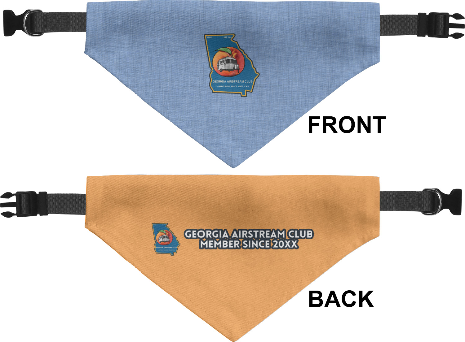 We print the front and back of these dog bandanas with your customized design. The bandana itself is made from a durable polyester, sewn together with a gap large enough to accommodate any collar. Regardless, the bandana includes a plain black, canvas collar with plastic snaps, that can easily be removed if desired. These dog bandana collars are available in four sizes: small, medium, large, and extra large. Please see our sizing chart for more information regarding the dimensions of each size.