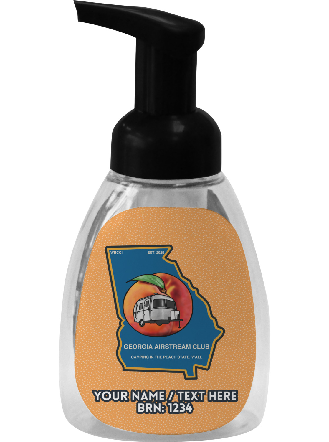 This soap dispenser is made of a robust plastic and has a clear base. The included soap pump is available in black or white color. This dispenser is 6.5 inches tall, 3 inches wide, and 2 inches deep. We display your customized designs on the front and back sides of these foaming hand soap dispensers.