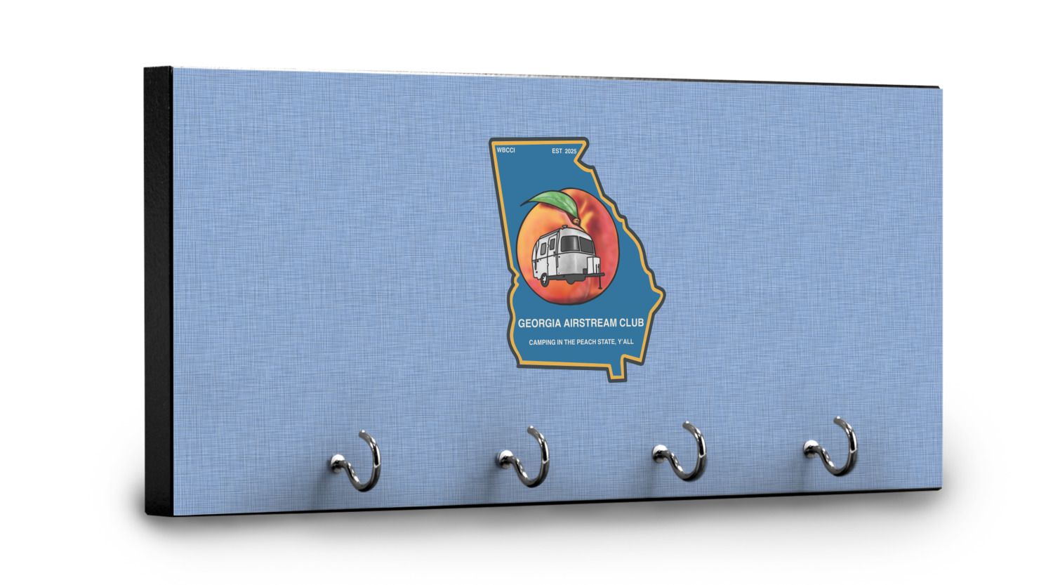 This 11" x 5" key hanger is made of sturdy wood and has four metal hooks lining the bottom. This is the perfect size for a family with several drivers. Not only can you hang keys on it though, but pet leashes and other small items. The board is black on the sides and back and is printed with the design of your choice on the front.