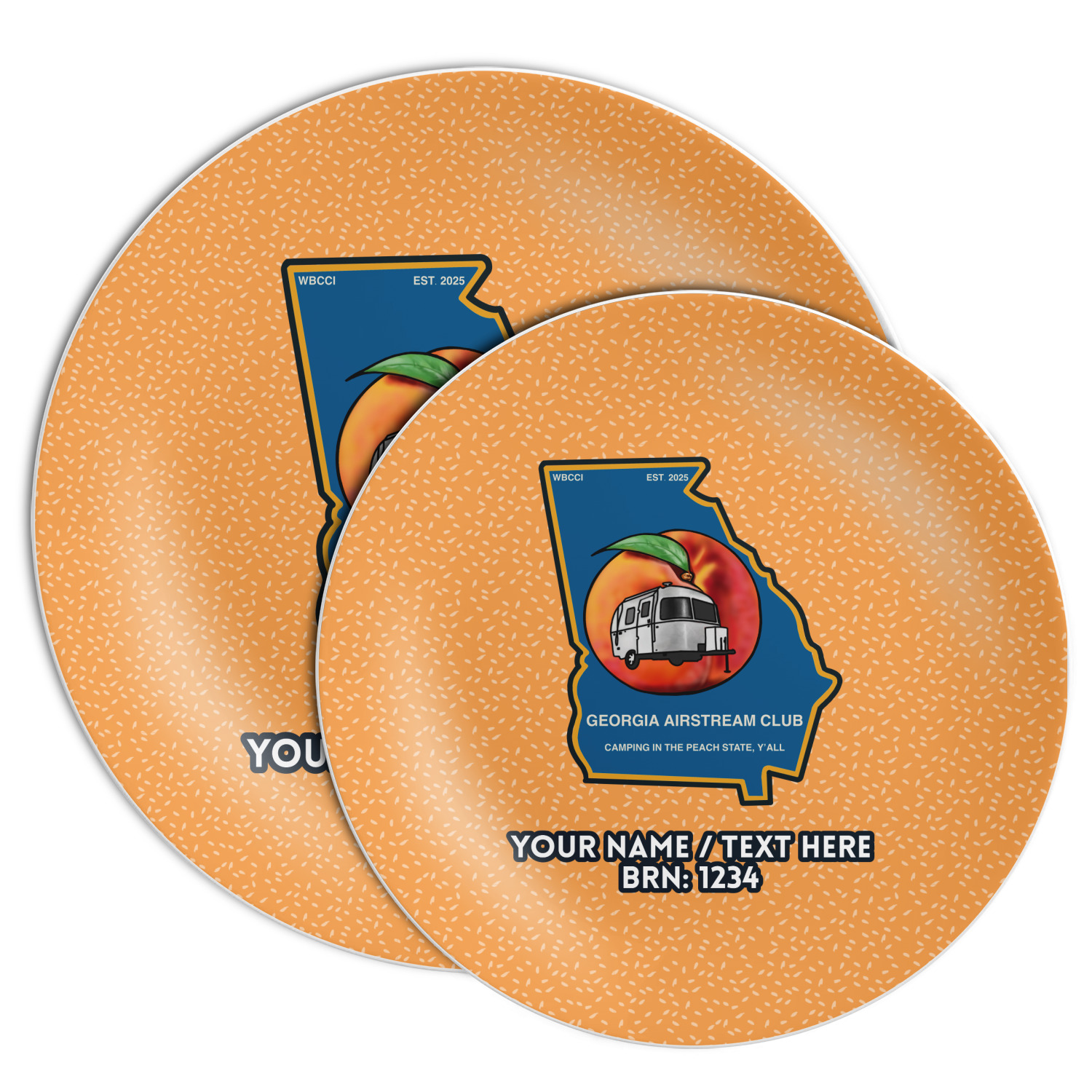 These personalized plates are free of BPA and break resistant, to survive the many drops of daily use. Your customization is displayed across the entire face of the plate, while the back of the plate remains white in color. We offer these plates in two different sizes: 8 inches and 10 inches in diameter.