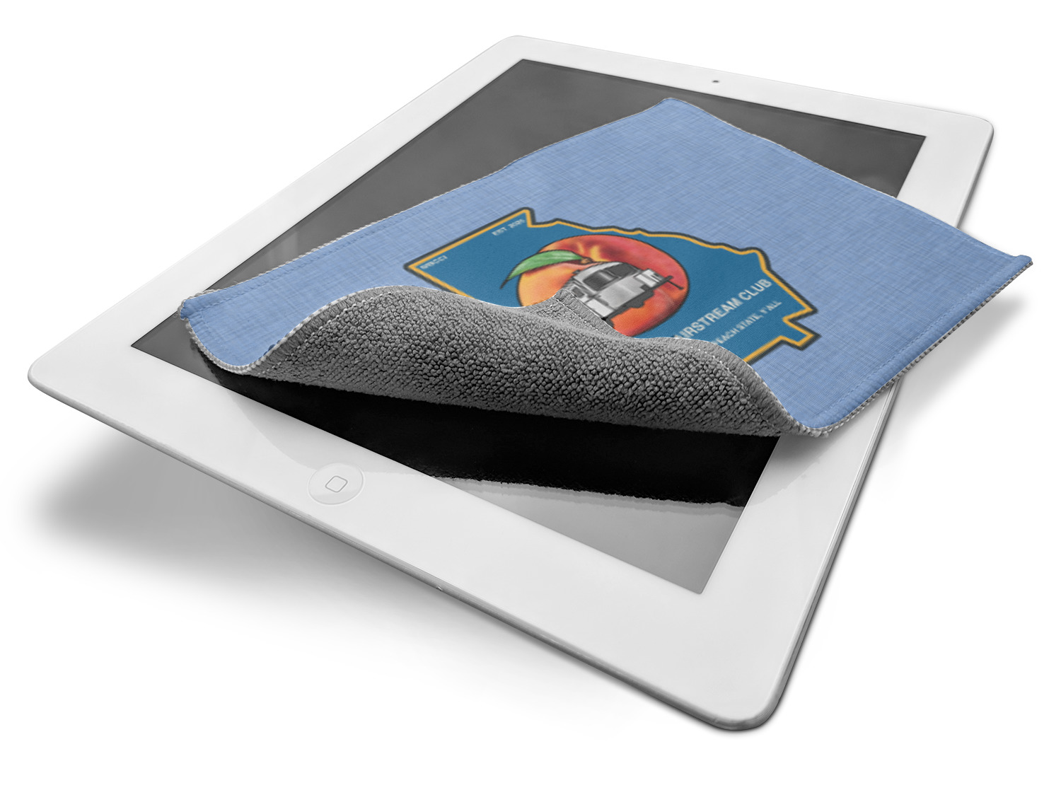 The back of this cleaning cloth is made from a gentle, grey microfiber material, that is masterful at removing smudges, grease, and fingerprints from lenses or electronic screens. The front side of the screen cleaner displays your personalized design in vibrant color. A beautiful stitch lines the edges and secures the microfiber to the polyester top. We provide you with the option of customizing this screen horizontally or vertically, depending on your preferences.