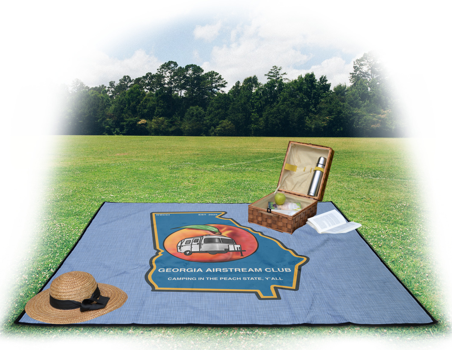 This picnic blanket is perfect for hanging out with your friends at the park or anywhere outside. The top of the blanket is made of a super soft microfiber fleece. The bottom of the blanket is made of a black material similar to a rain jacket and is water repellent as well. This will keep any wet spots on the ground from soaking through your picnic blanket. No one likes a wet blanket. The blanket measures at approximately 50" x 59" and has a nicely finished ribbon edge.