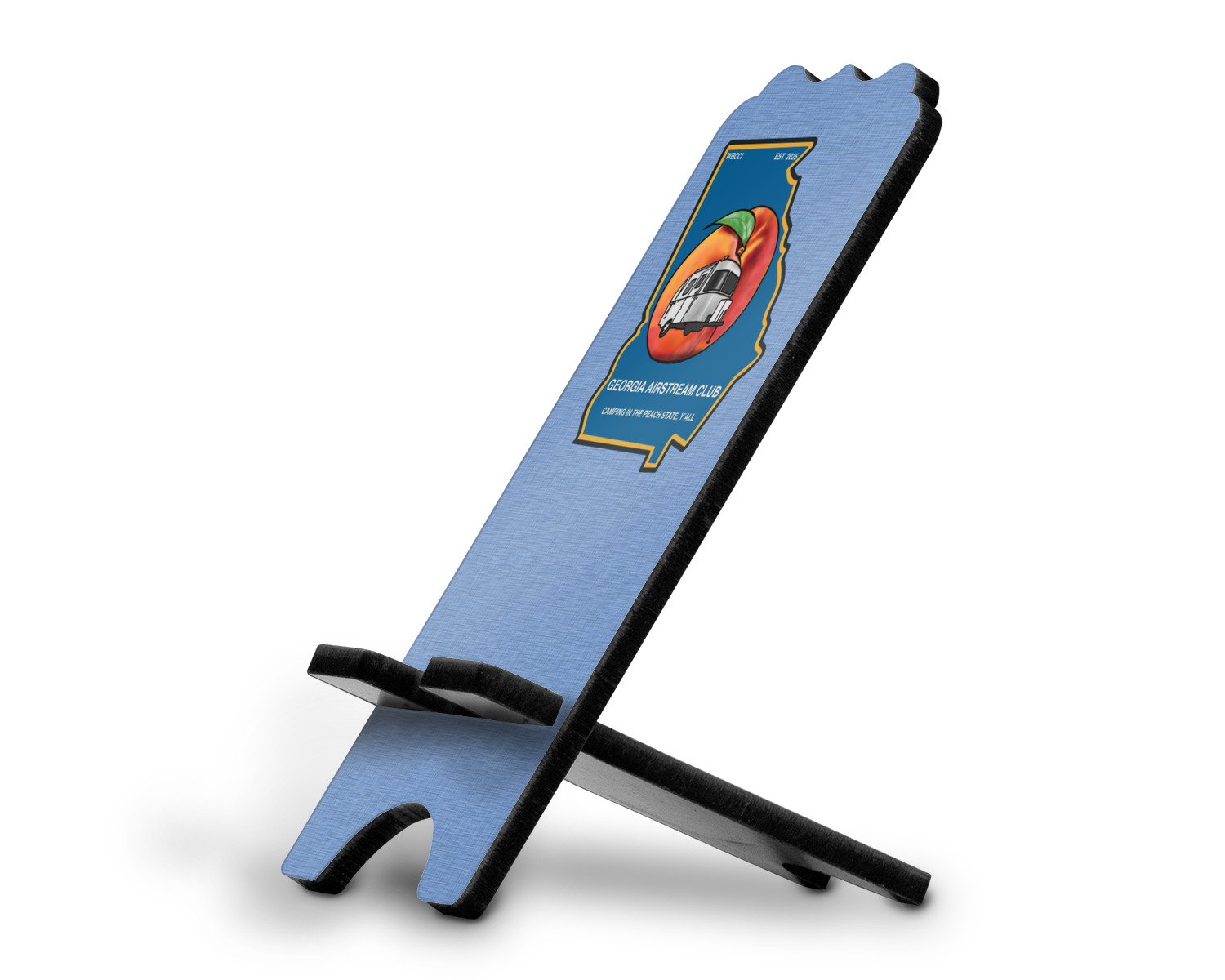 These cell phone holders are comprised of two hardboard pieces, that lock into and steady one another. The bottom part of the mobile phone stand is spacious enough to support both your phone and your charger, while it is not in use. We print your customization atop the face of this stand, while the remaining sides are a sophisticated, black color.
