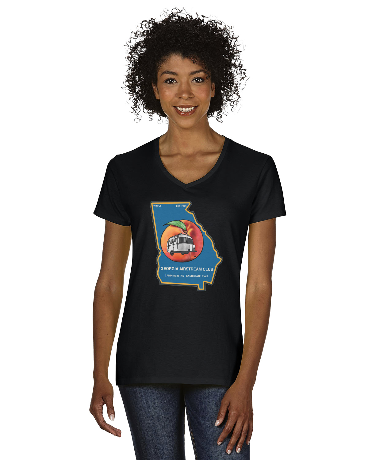 Our feminine cut V-neck t-shirts fit true to size. The V-neck t-shirt does have a tapered shape to achieve the missy contoured silhouette so if you prefer a looser fit, we recommend sizing up. Our sizing chart for this garment is below: