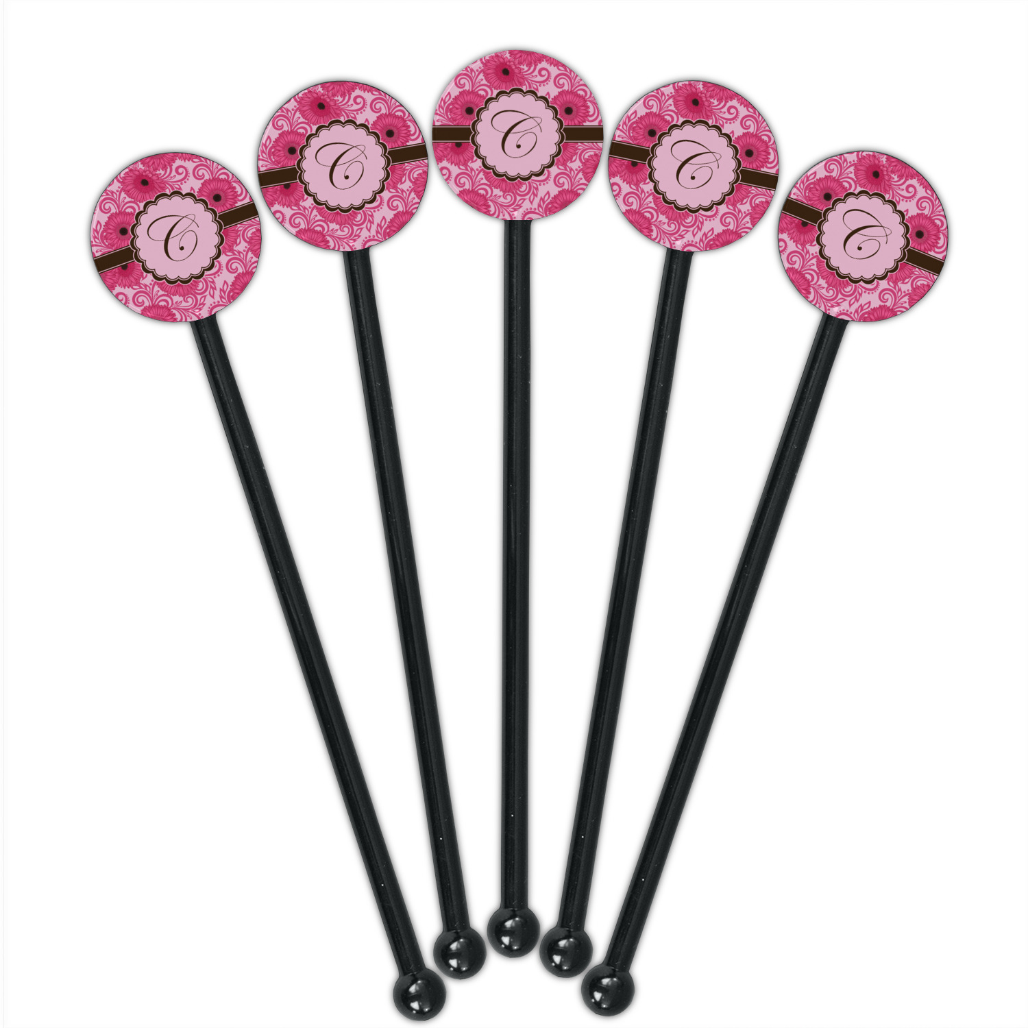 Daisy / Daisies Designs for 5.5" Round Plastic Stir Sticks - Black - Single-Sided