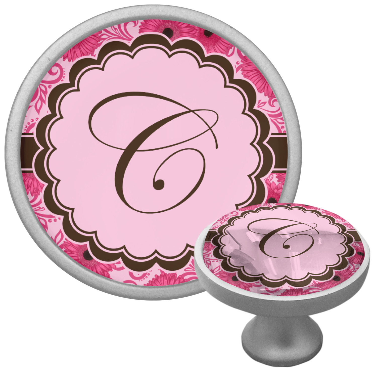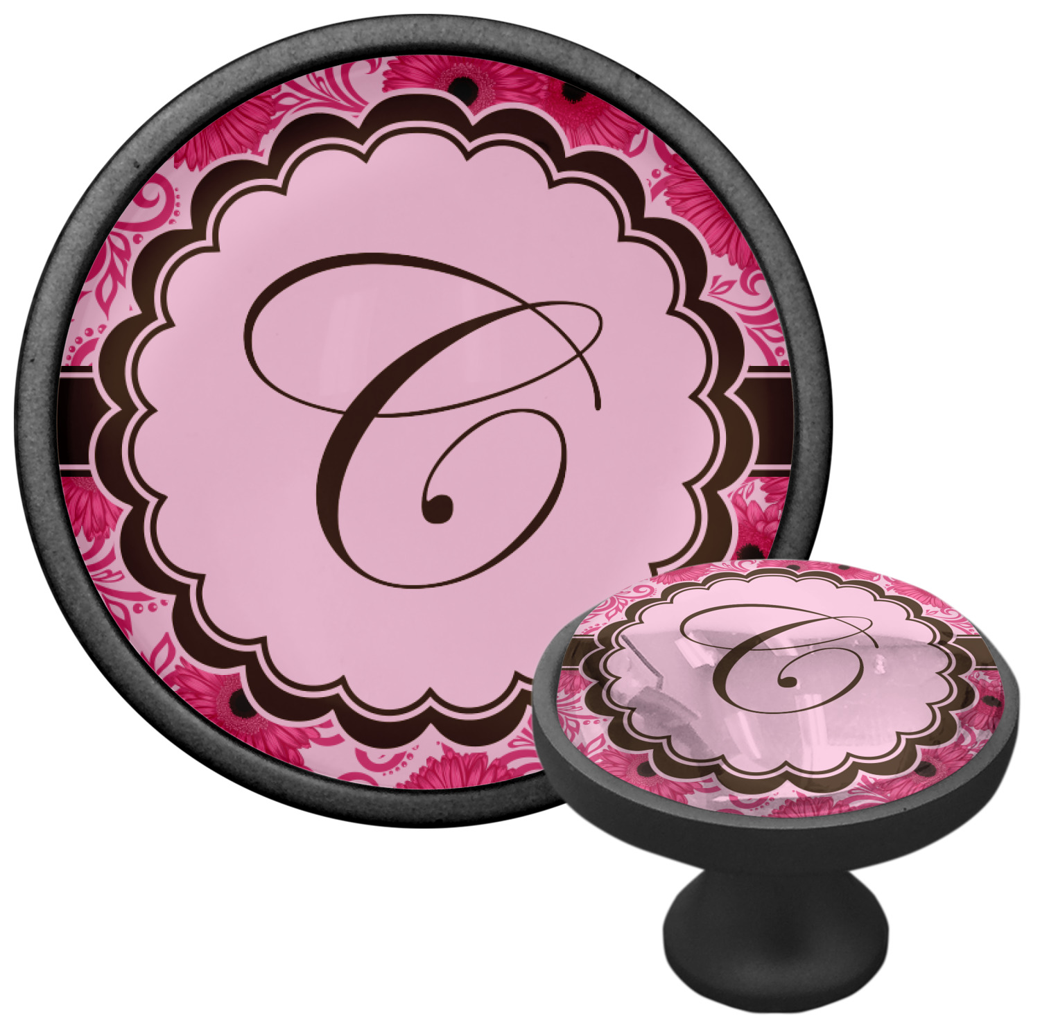 We sell these cabinet pulls in two different colors to better match your room's color scheme. We offer an oil-rubbed bronze base that is black in color, and a satin nickel option, which has a silver color. Your design is displayed across a high gloss vinyl insert that is placed on top of these cabinet handles. We then place a 1 inch thick glass cabochon atop the design, which seals the cabinet knob and makes the colors of your customization stand out. These custom cabinet knobs are approximately 1.3 inches in diameter. Your purchase includes a 1 inch screw that can be used to mount the knob to any cabinet in your home.