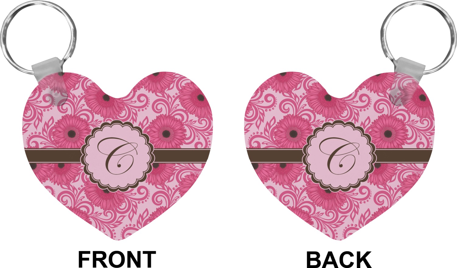 Our personalized keychains attach to the included metal, split key ring with a plastic, removable snap. Since a metal ring is included with your purchase, you have the liberty to keep your keys together on the ring, with or without your unique keychain. We offer this keychain in three different shapes: circle, heart, or diamond. We print your personalized design(s) on both sides of the key chain, and the surface has a glossy, reflective finish that only emphasizes your design. Each keychain is approximately 2.25 by 2.25 inches.