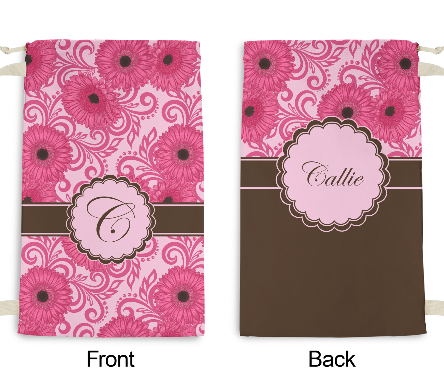 Carry your laundry in style with these customized laundry bags. Available in two sizes, featuring a natural colored woven strap and a cinch cord, these bags hold a lot of clothes or anything else you want to fit in them.