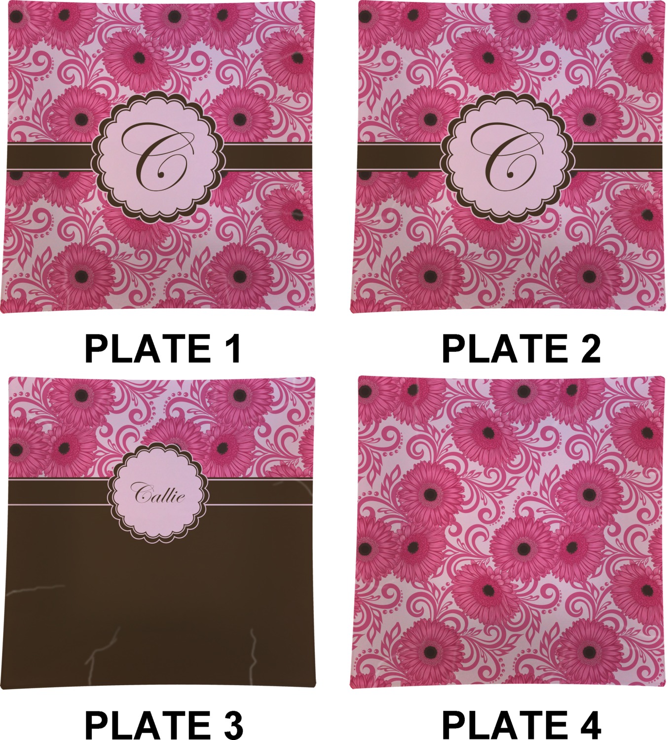 Daisy / Daisies Designs for Glass Square Lunch / Dinner Plates 9.5" - Set of 4