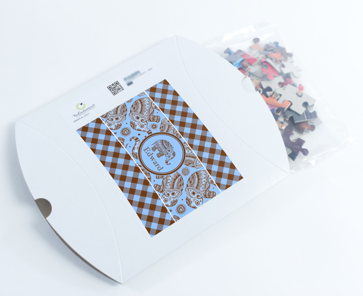 You can also upload your logo or art that you or your kids drew. To create more challenging jigsaw puzzles, you can create a pattern from with your logo or artwork. You can also add other elements such as text or personalization.