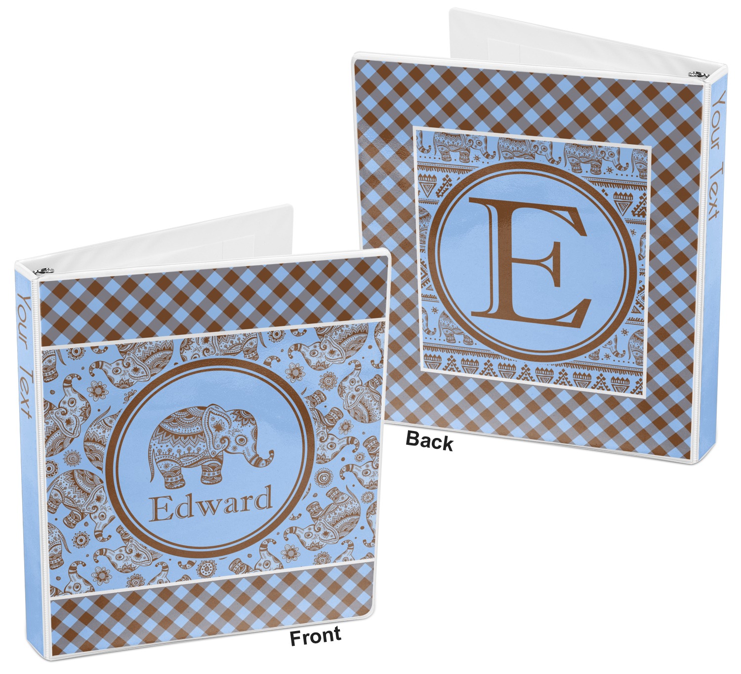 This design with gingham and baby elephants is elegant and versatile. We chose to use baby blue and brown for our colors, however the design is fully recolor-able; so you can change the both the colors to any color combination that you like.