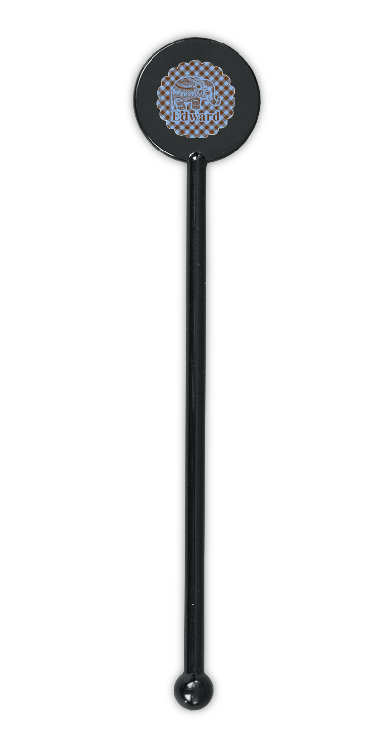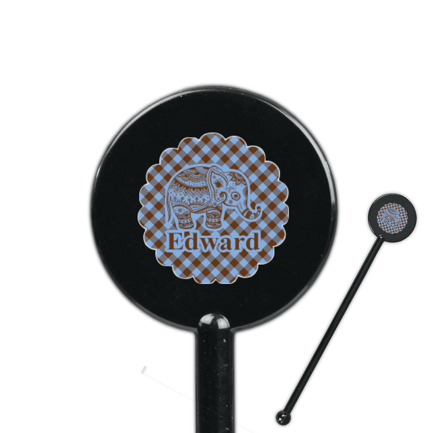 We chose the angled gingham for the top and bottom, but you have the choice of straight gingham or any other pattern in our system that you like. Our baby elephant pattern are available in 3 different styles - we chose style 2. We opted not to have a ribbon and chose a simple round label with a graphic of the elephant and the personalization below the elephant graphic.