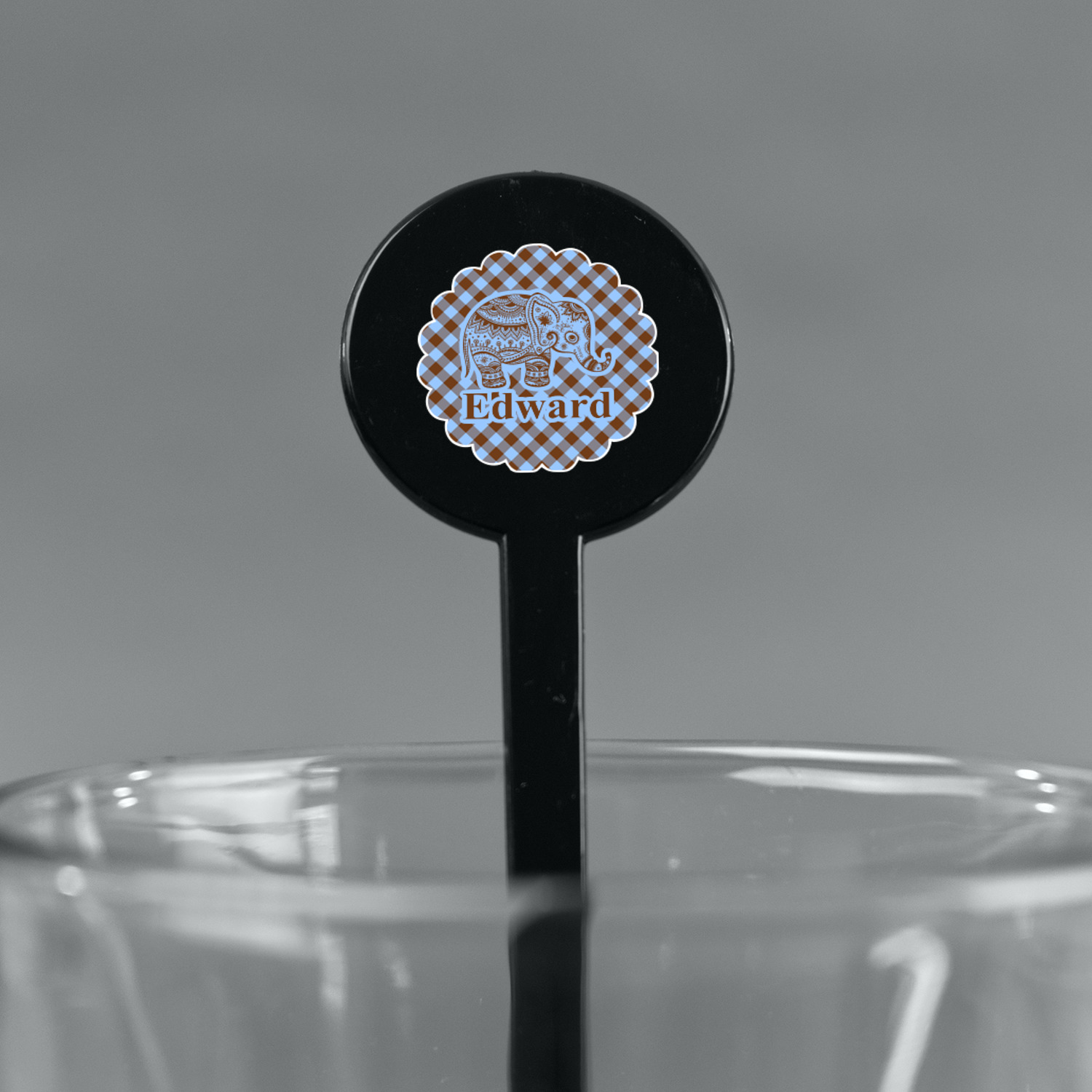 We chose the angled gingham for the top and bottom, but you have the choice of straight gingham or any other pattern in our system that you like. Our baby elephant pattern are available in 3 different styles - we chose style 2. We opted not to have a ribbon and chose a simple round label with a graphic of the elephant and the personalization below the elephant graphic.