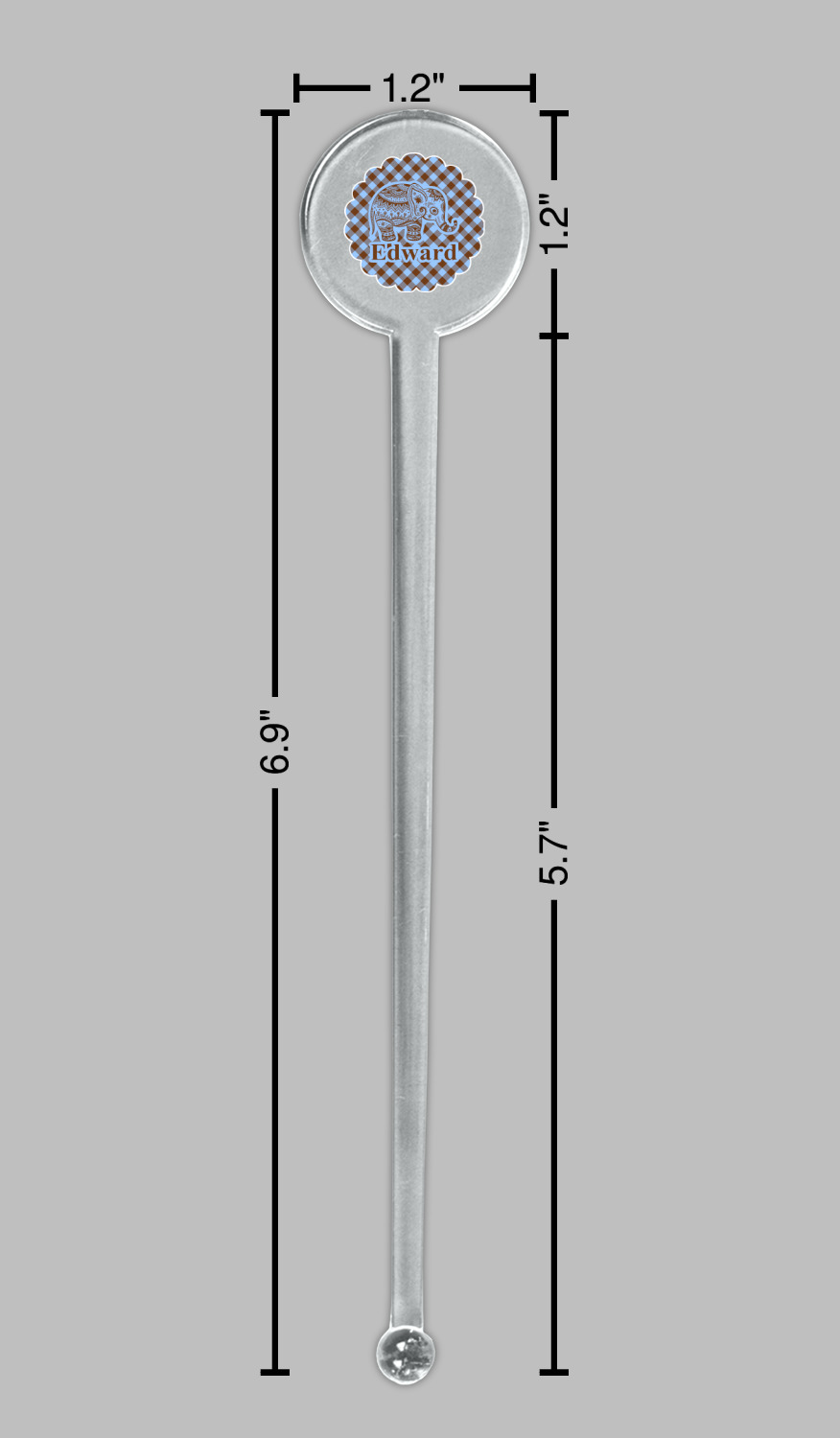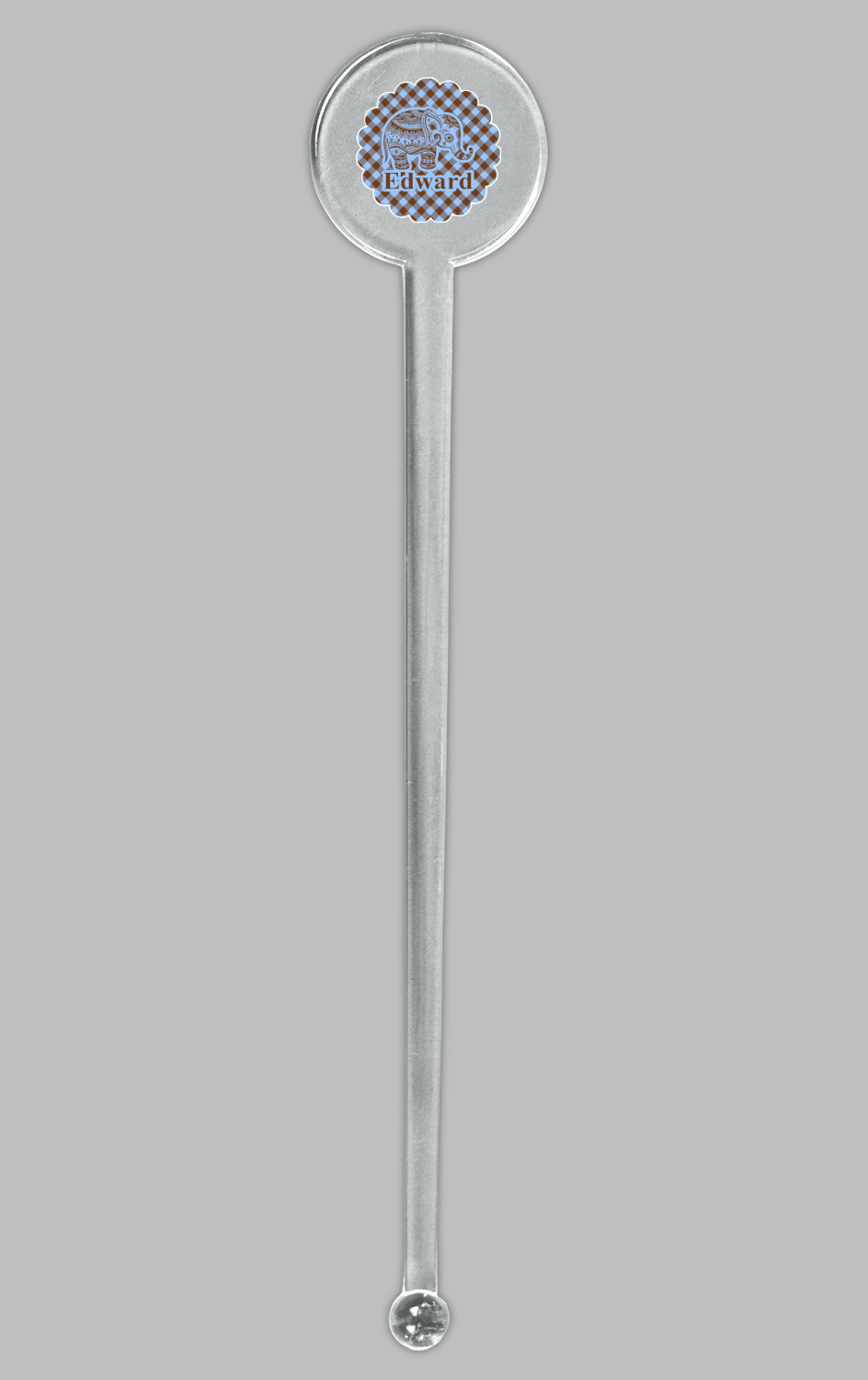 We chose the angled gingham for the top and bottom, but you have the choice of straight gingham or any other pattern in our system that you like. Our baby elephant pattern are available in 3 different styles - we chose style 2. We opted not to have a ribbon and chose a simple round label with a graphic of the elephant and the personalization below the elephant graphic.