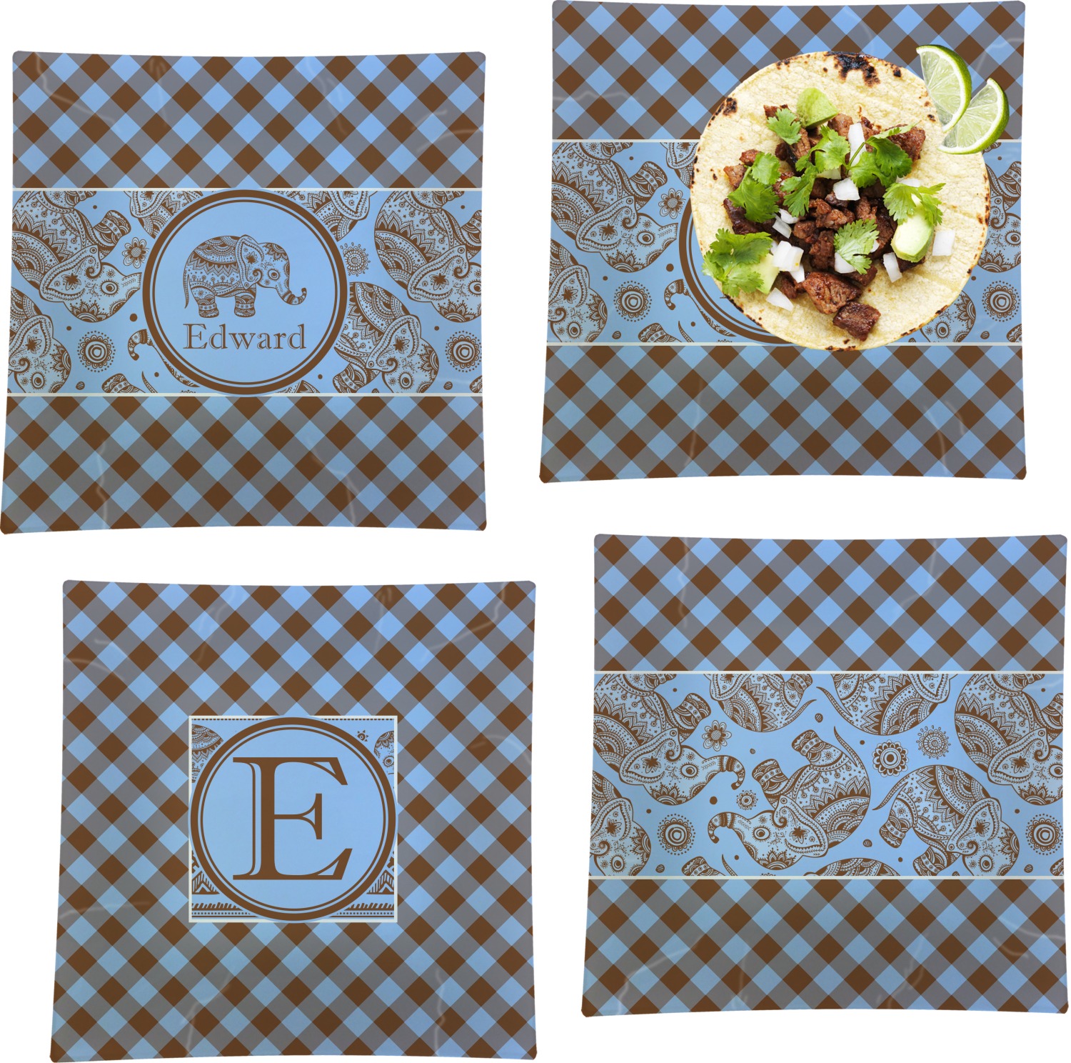 This design with gingham and baby elephants is elegant and versatile. We chose to use baby blue and brown for our colors, however the design is fully recolor-able; so you can change the both the colors to any color combination that you like.