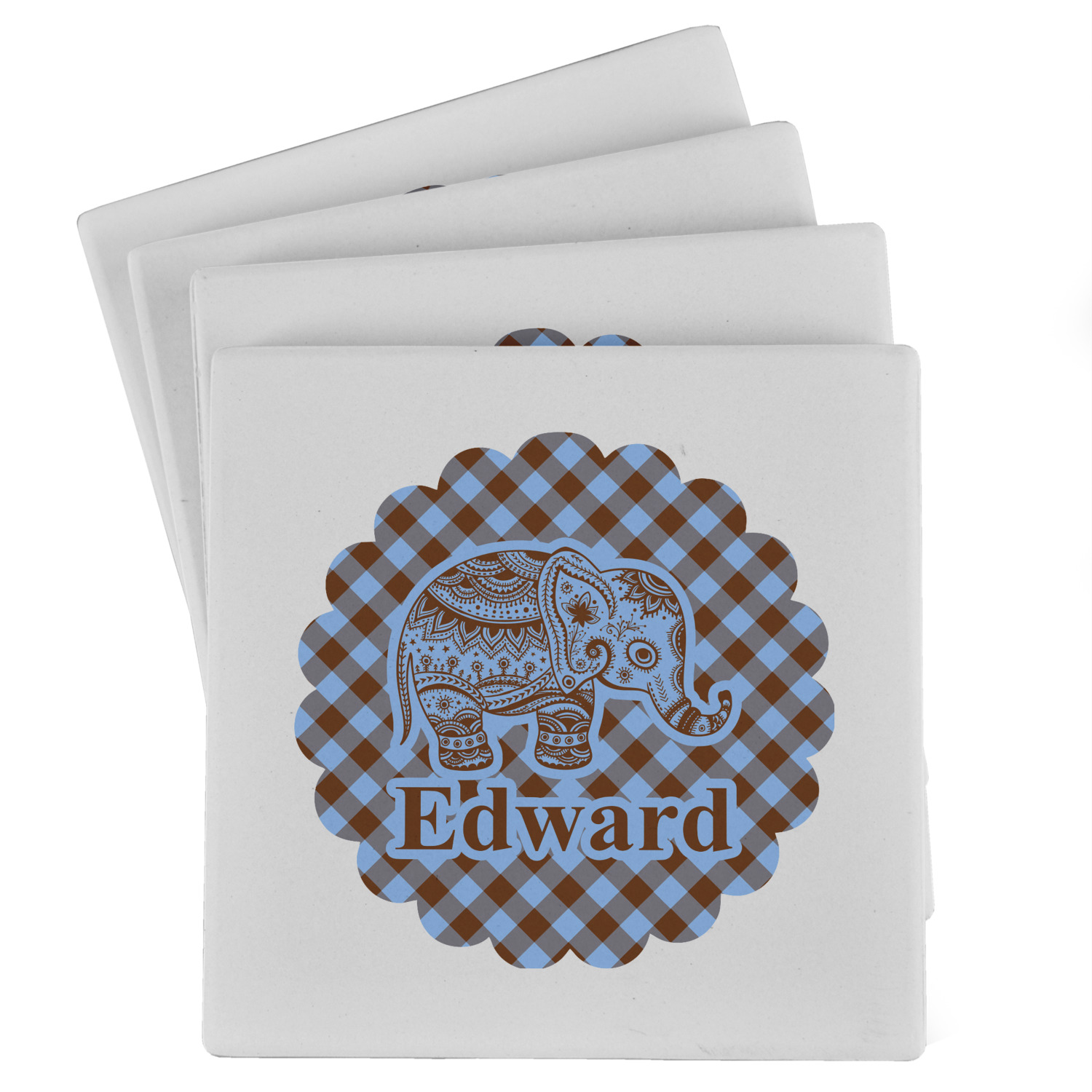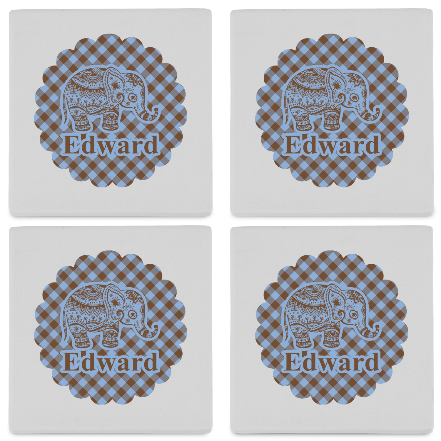 This design with gingham and baby elephants is elegant and versatile. We chose to use baby blue and brown for our colors, however the design is fully recolor-able; so you can change the both the colors to any color combination that you like.
