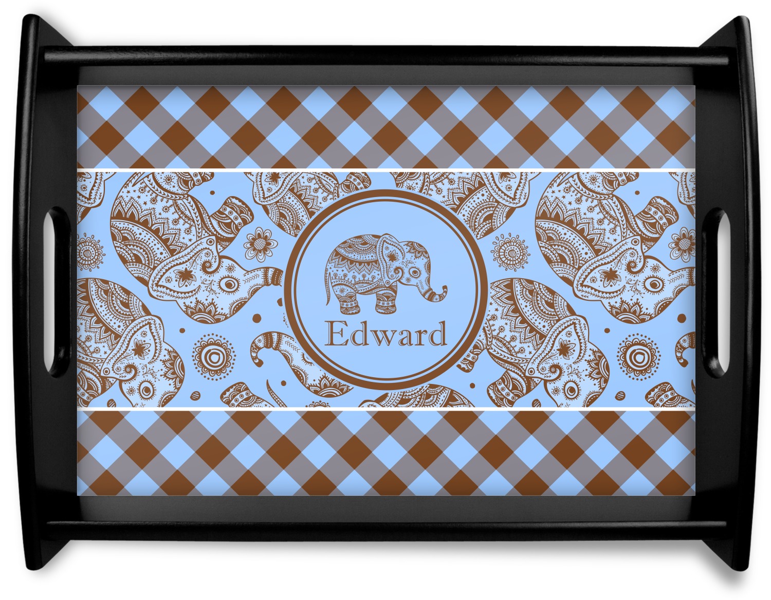 This design with gingham and baby elephants is elegant and versatile. We chose to use baby blue and brown for our colors, however the design is fully recolor-able; so you can change the both the colors to any color combination that you like.