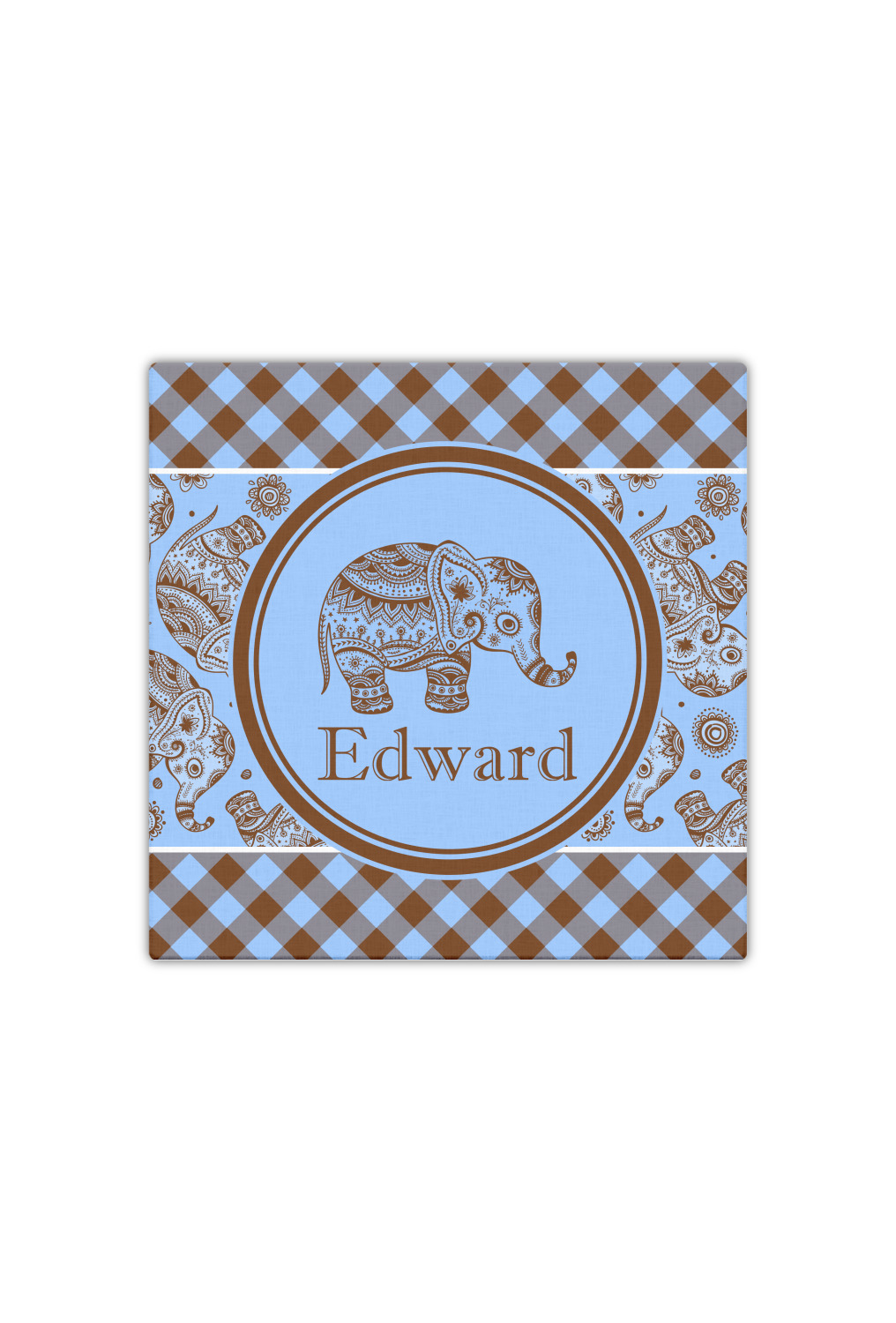 This design with gingham and baby elephants is elegant and versatile. We chose to use baby blue and brown for our colors, however the design is fully recolor-able; so you can change the both the colors to any color combination that you like.