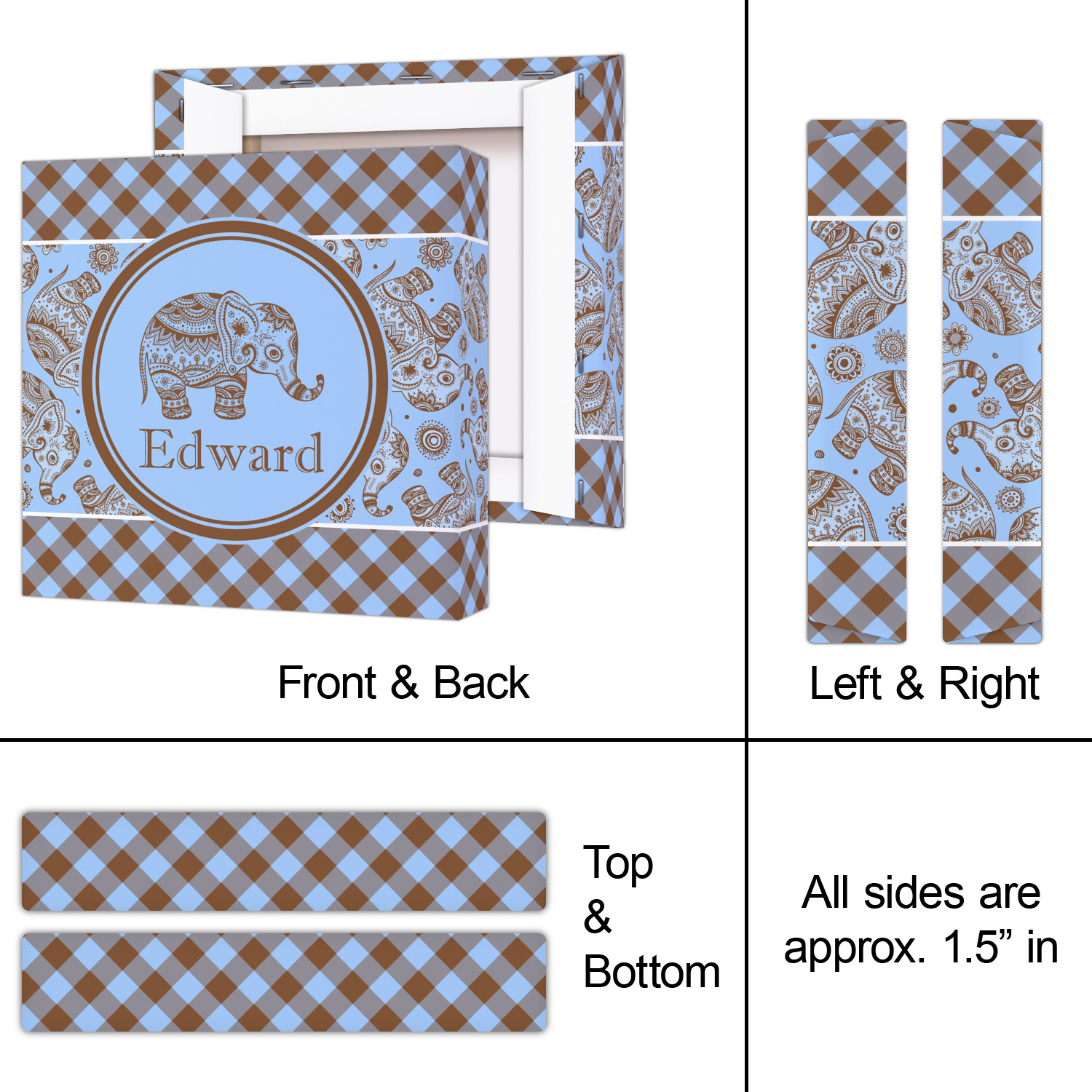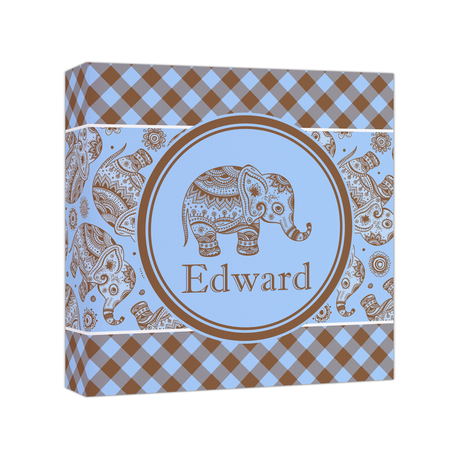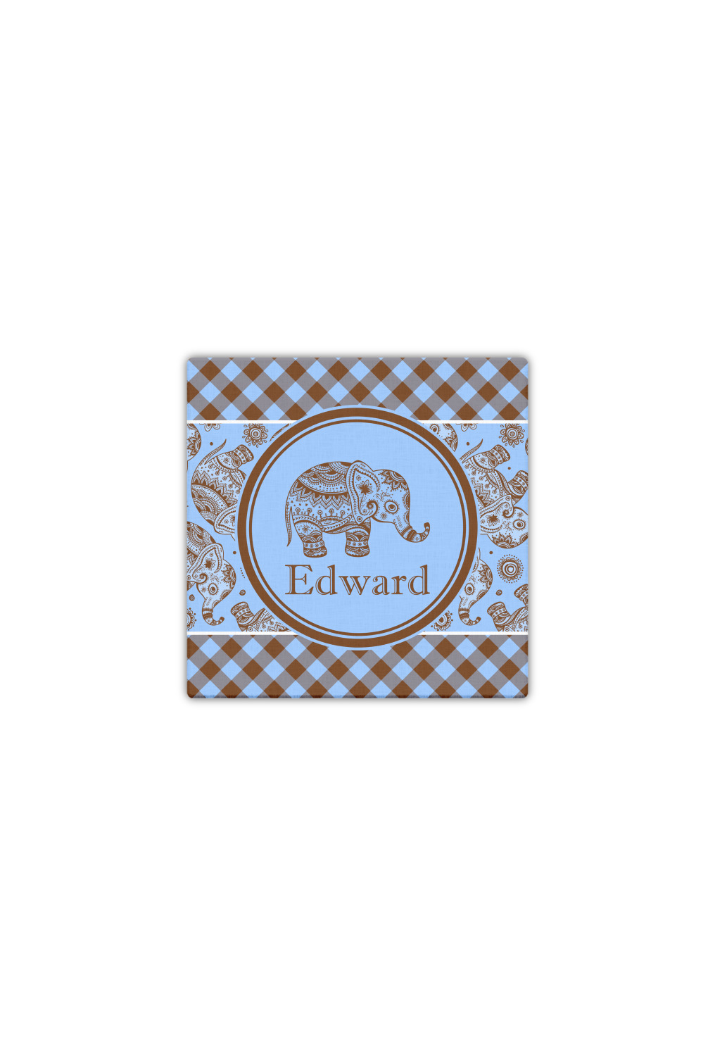 This design with gingham and baby elephants is elegant and versatile. We chose to use baby blue and brown for our colors, however the design is fully recolor-able; so you can change the both the colors to any color combination that you like.