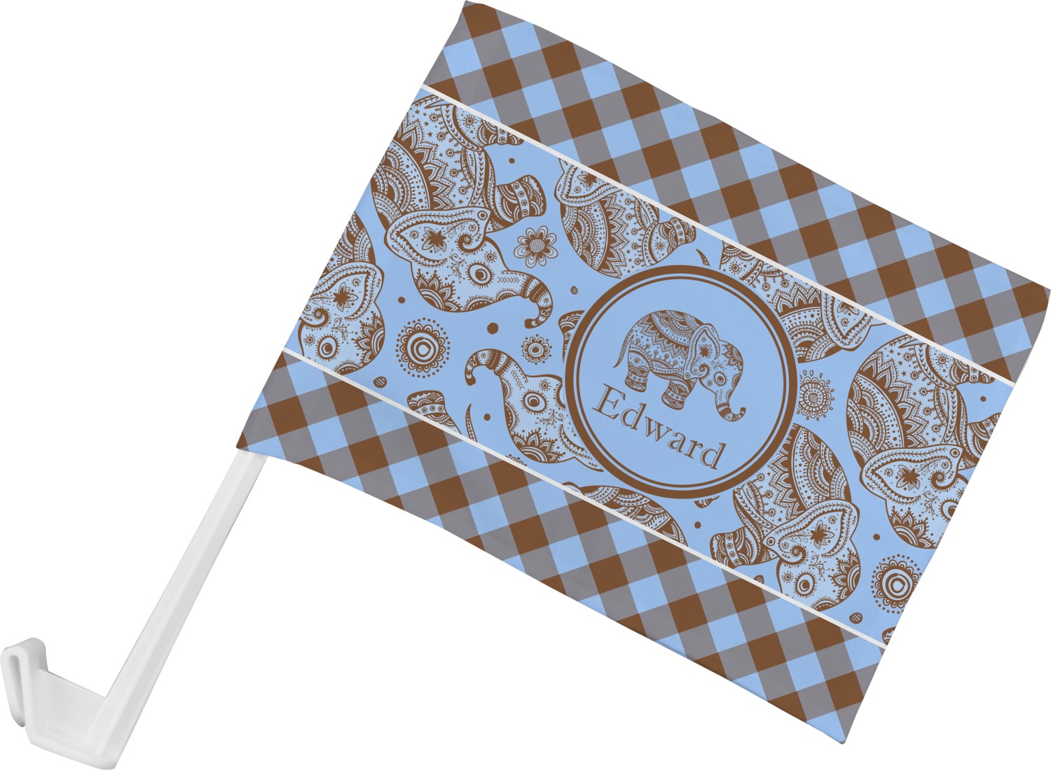 This design with gingham and baby elephants is elegant and versatile. We chose to use baby blue and brown for our colors, however the design is fully recolor-able; so you can change the both the colors to any color combination that you like.