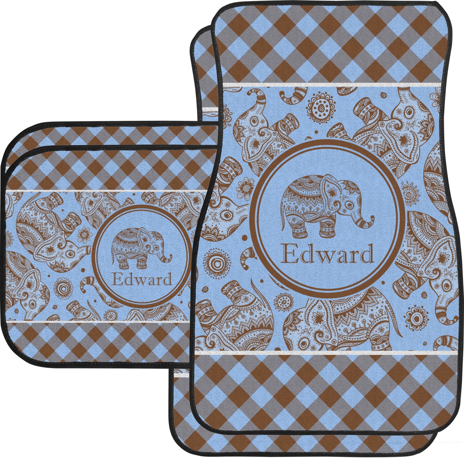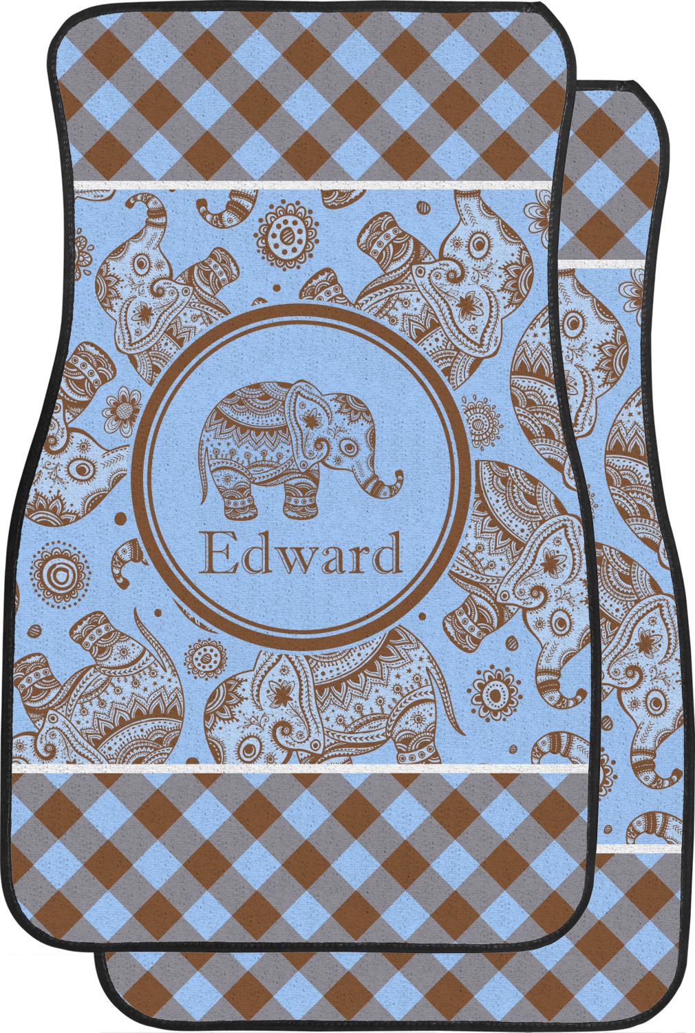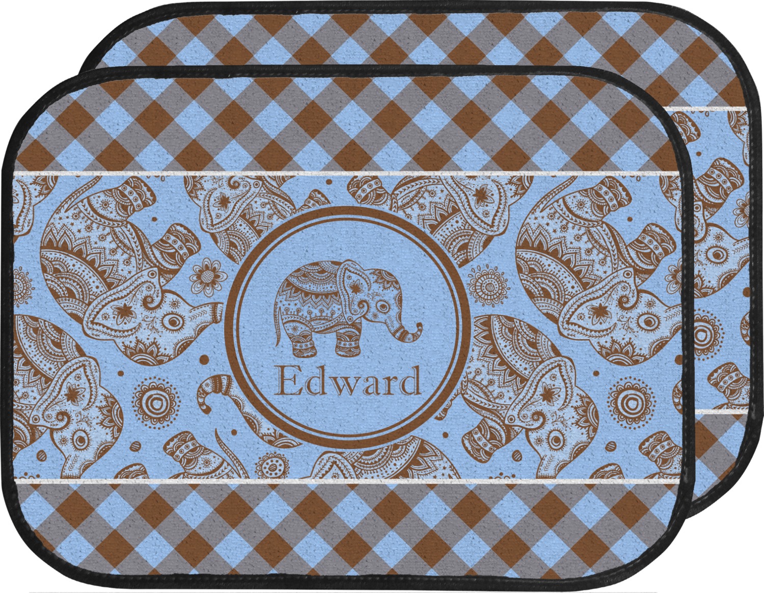 This design with gingham and baby elephants is elegant and versatile. We chose to use baby blue and brown for our colors, however the design is fully recolor-able; so you can change the both the colors to any color combination that you like.