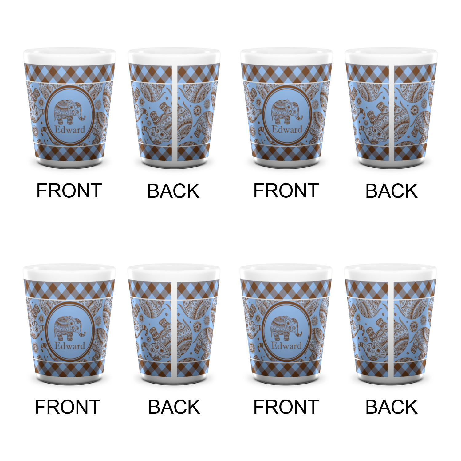 Made from ceramic these shot glasses are printed in full color with the design of your choice. These are a standard 1.5oz size and stand 2.25" tall. Available in a full white ceramic or a two-tone with a black color inside the shot glass. Buy a single or a set of 4, all of which can be designed separately to get you just what you want and need.