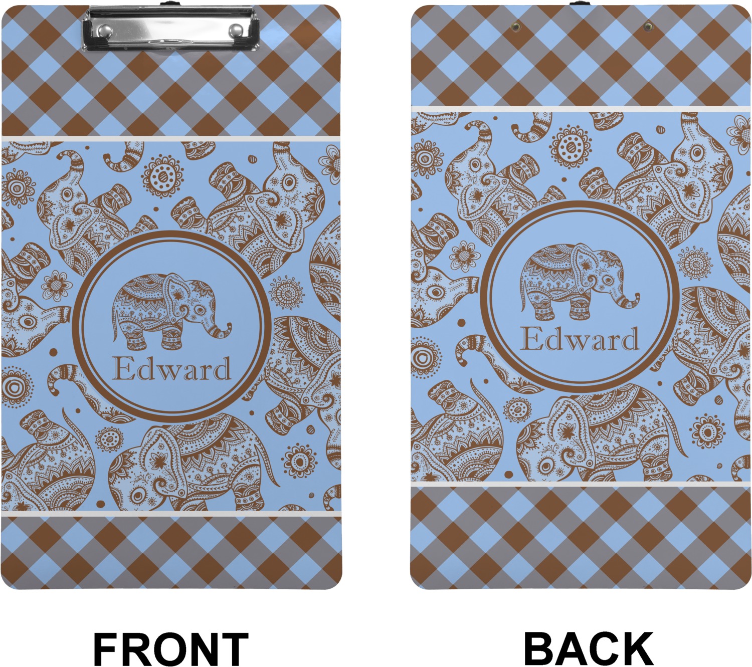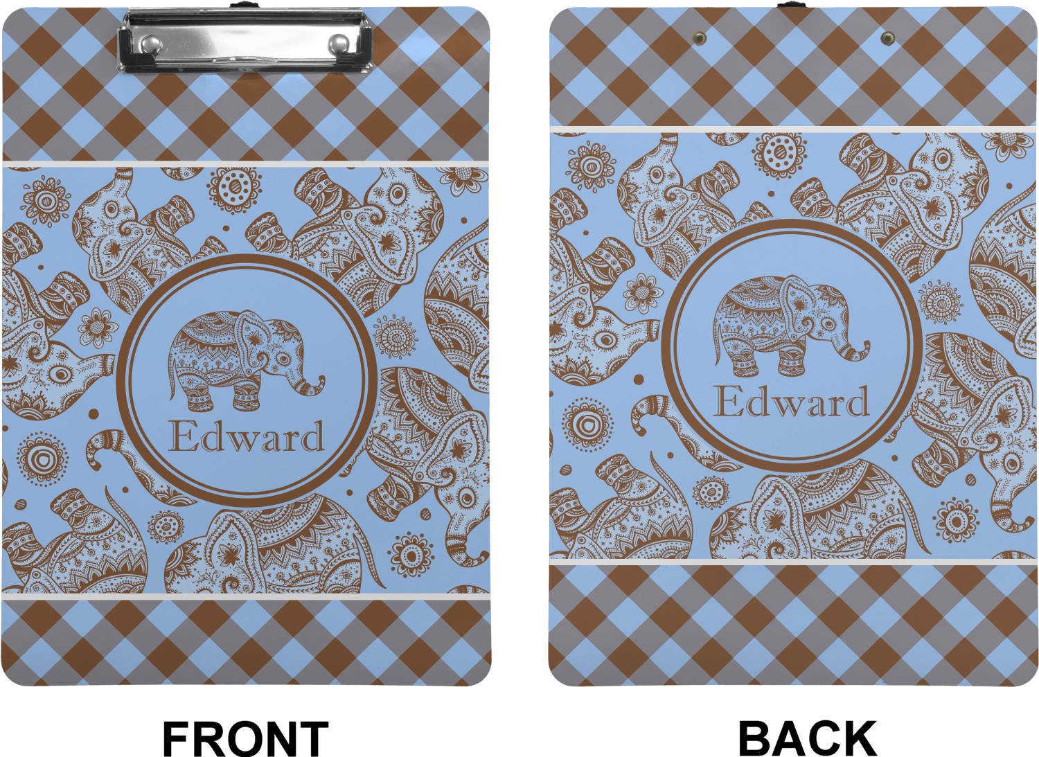 These custom clipboards are made from a strong hardboard and are coated with a glossy finish that accentuates the colors of your design. Alongside a retractable hook at its top, these decorative clipboards also feature sturdy clips to secure several sheets of paper. We sell these clipboards in two separate sizes. Our letter size measures at 12.5" L x 9" W, while our legal clipboard is approximately 15.5" L x 9" W. On both models, your personalization is printed on both sides of this clipboard and can be customized individually.