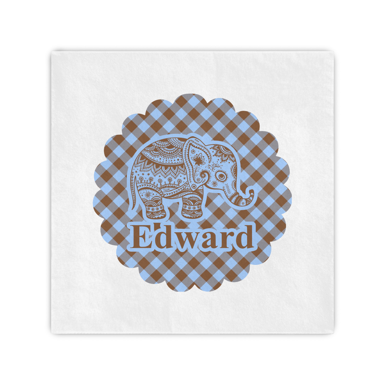 This design with gingham and baby elephants is elegant and versatile. We chose to use baby blue and brown for our colors, however the design is fully recolor-able; so you can change the both the colors to any color combination that you like.