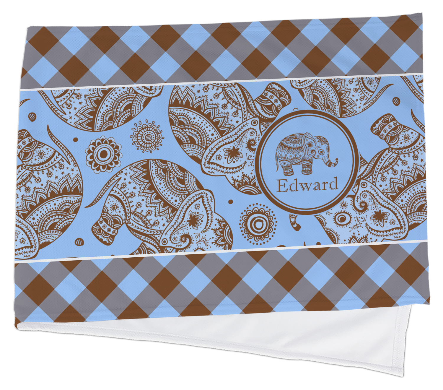 This design with gingham and baby elephants is elegant and versatile. We chose to use baby blue and brown for our colors, however the design is fully recolor-able; so you can change the both the colors to any color combination that you like.