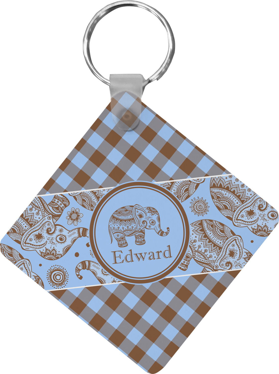 Our personalized keychains attach to the included metal, split key ring with a plastic, removable snap. Since a metal ring is included with your purchase, you have the liberty to keep your keys together on the ring, with or without your unique keychain. We offer this keychain in three different shapes: circle, heart, or diamond. We print your personalized design(s) on both sides of the key chain, and the surface has a glossy, reflective finish that only emphasizes your design. Each keychain is approximately 2.25 by 2.25 inches.