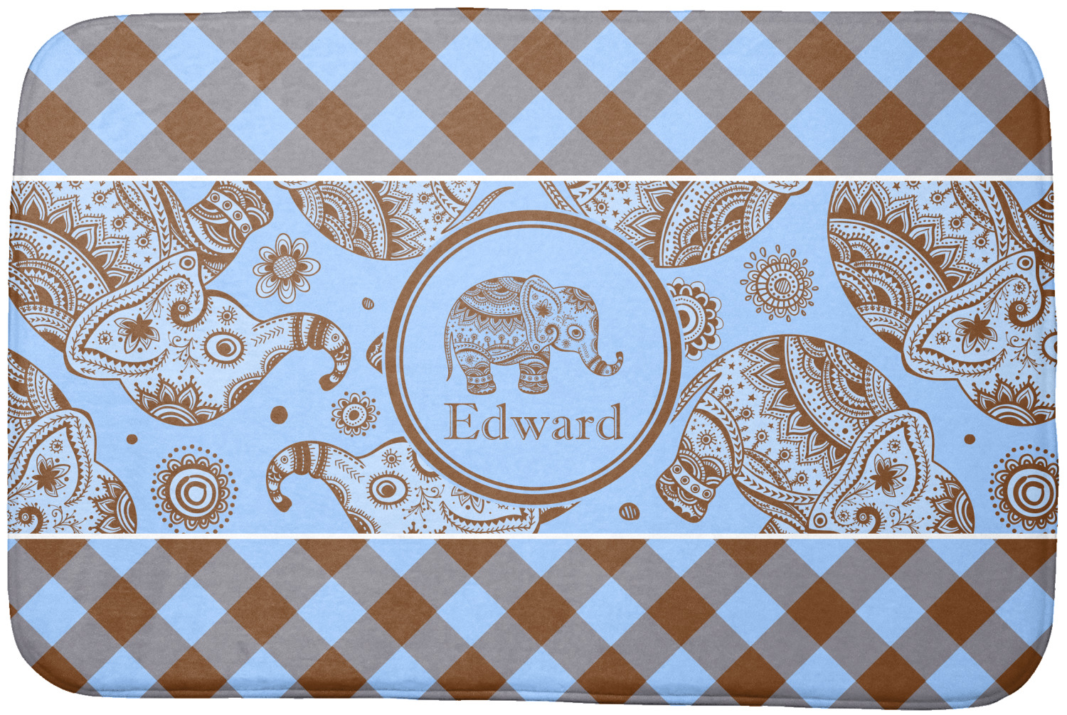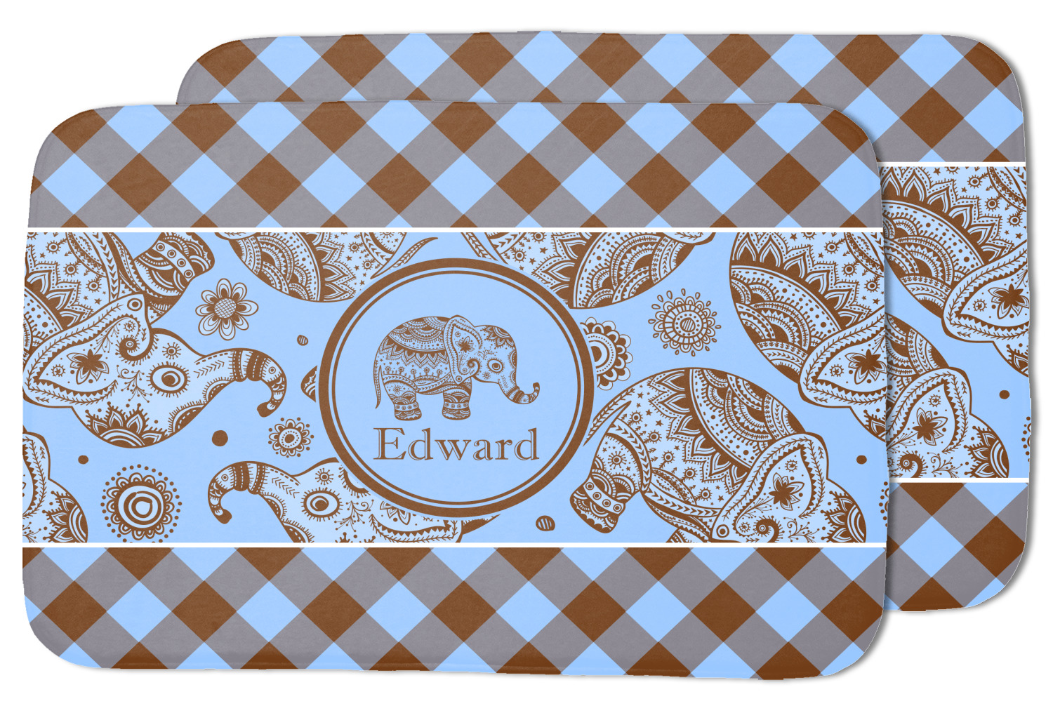 This design with gingham and baby elephants is elegant and versatile. We chose to use baby blue and brown for our colors, however the design is fully recolor-able; so you can change the both the colors to any color combination that you like.