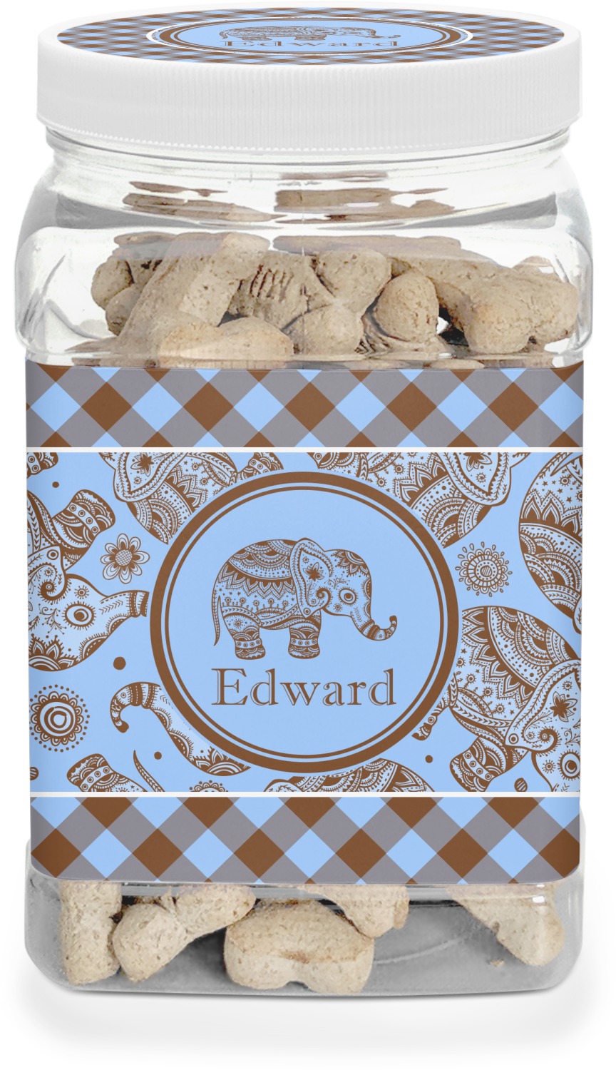 In the market for some other, cute pet supplies? Have a look at our Pet Accessories department, where you can customize a matching dog food bowl, dog food mat, or even a glass dog treat jar! Overjoyed with the idea of a customizable container? Explore the kitchen department within our Home and Garden category, where you can personalize snack containers for humans, as a gift, or just as a part of your kitchen decor!