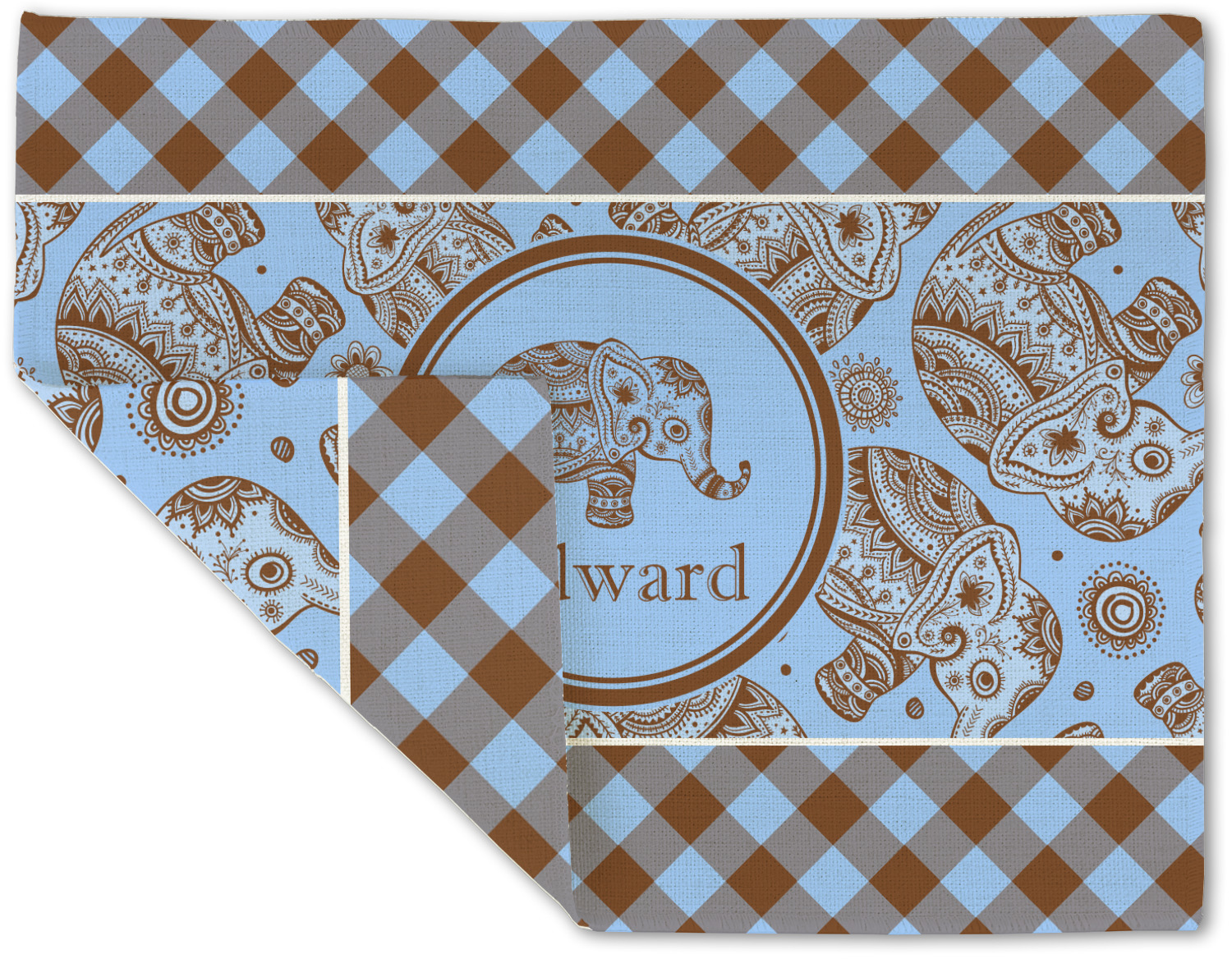 This design with gingham and baby elephants is elegant and versatile. We chose to use baby blue and brown for our colors, however the design is fully recolor-able; so you can change the both the colors to any color combination that you like.