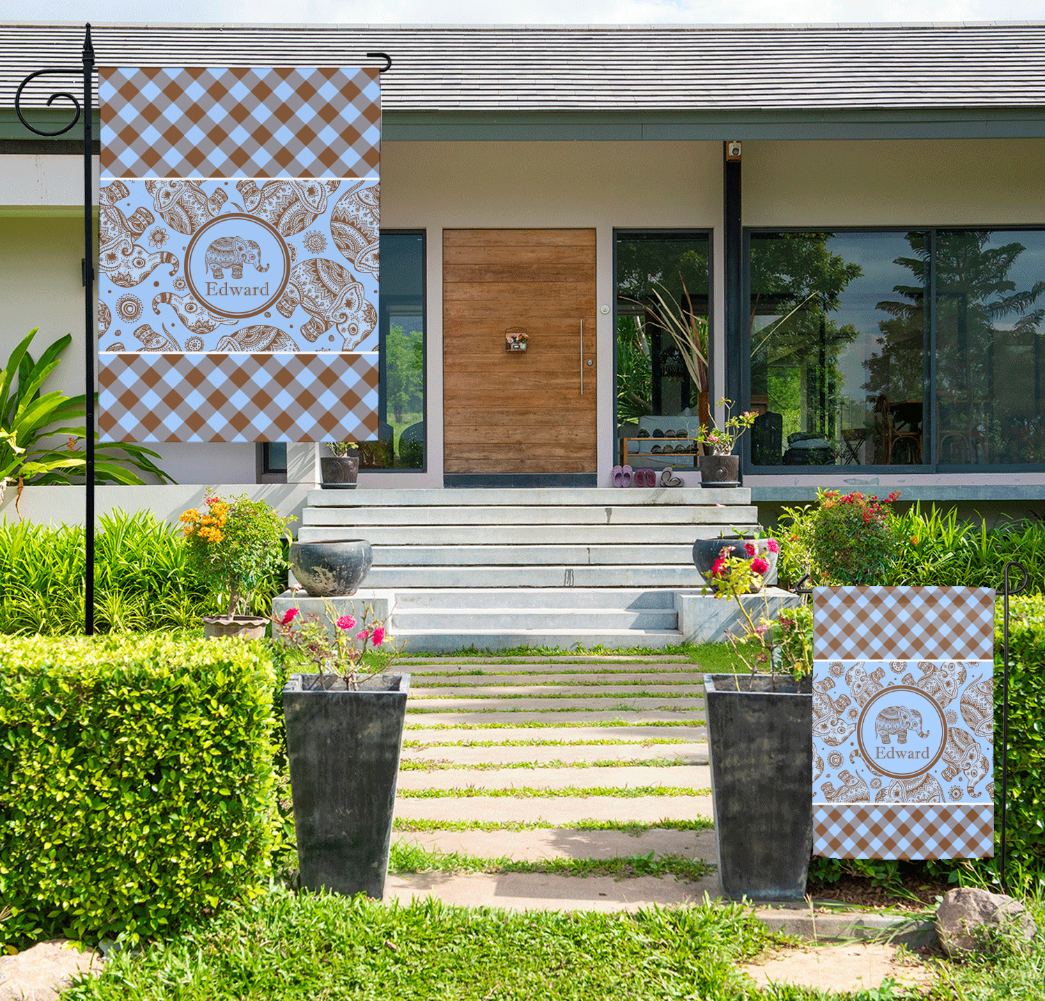 Decorate your front yard or your garden with one of our personalized garden flags! These garden flags will add a splash of color and personalization to any home's greenspace. Customize one with your name, favorite colors, and patterns, as a great addition to your home's exterior! Or, customize multiple seasonal flags and change them throughout the year!