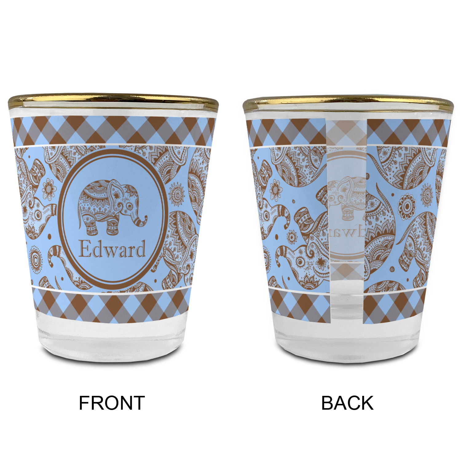 This design with gingham and baby elephants is elegant and versatile. We chose to use baby blue and brown for our colors, however the design is fully recolor-able; so you can change the both the colors to any color combination that you like.