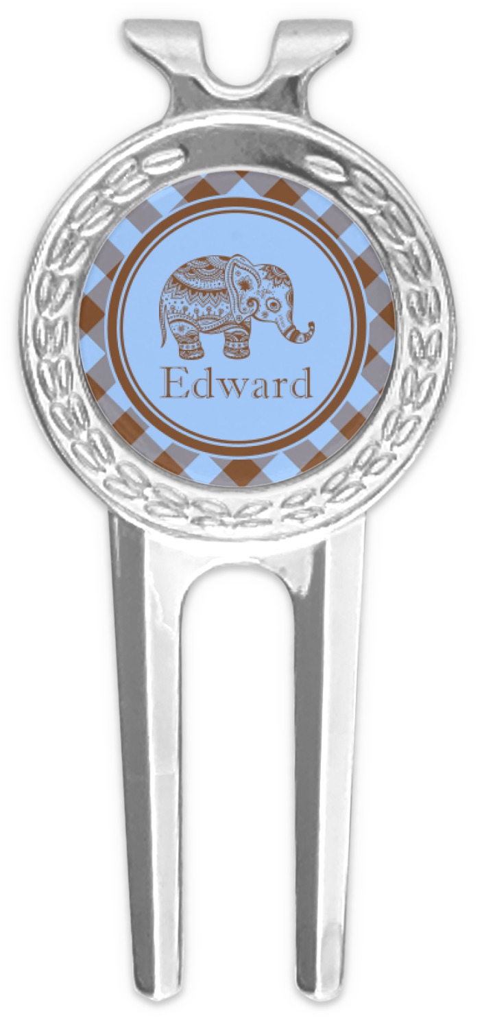 This great little stainless steel divot tool is two-pronged and is approximately 3.25" x 1.5". The two prongs make is a breeze to fix any divots. There is a golf ball shaped place on the back of your tool where your thumb can sit in order to do this easily.
