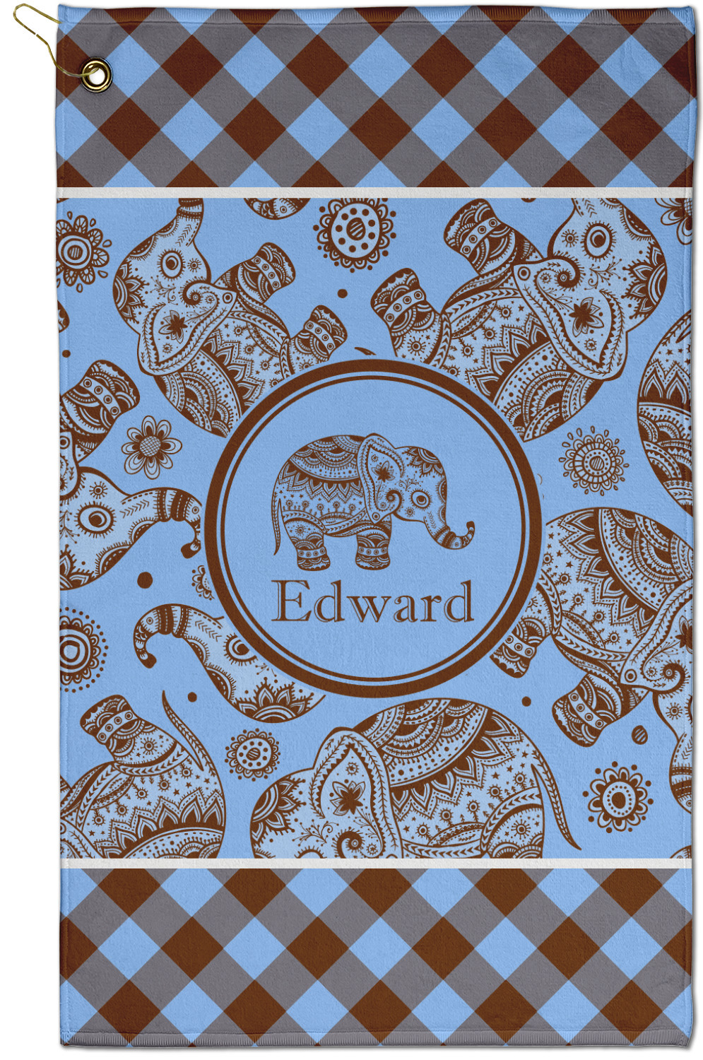 This design with gingham and baby elephants is elegant and versatile. We chose to use baby blue and brown for our colors, however the design is fully recolor-able; so you can change the both the colors to any color combination that you like.