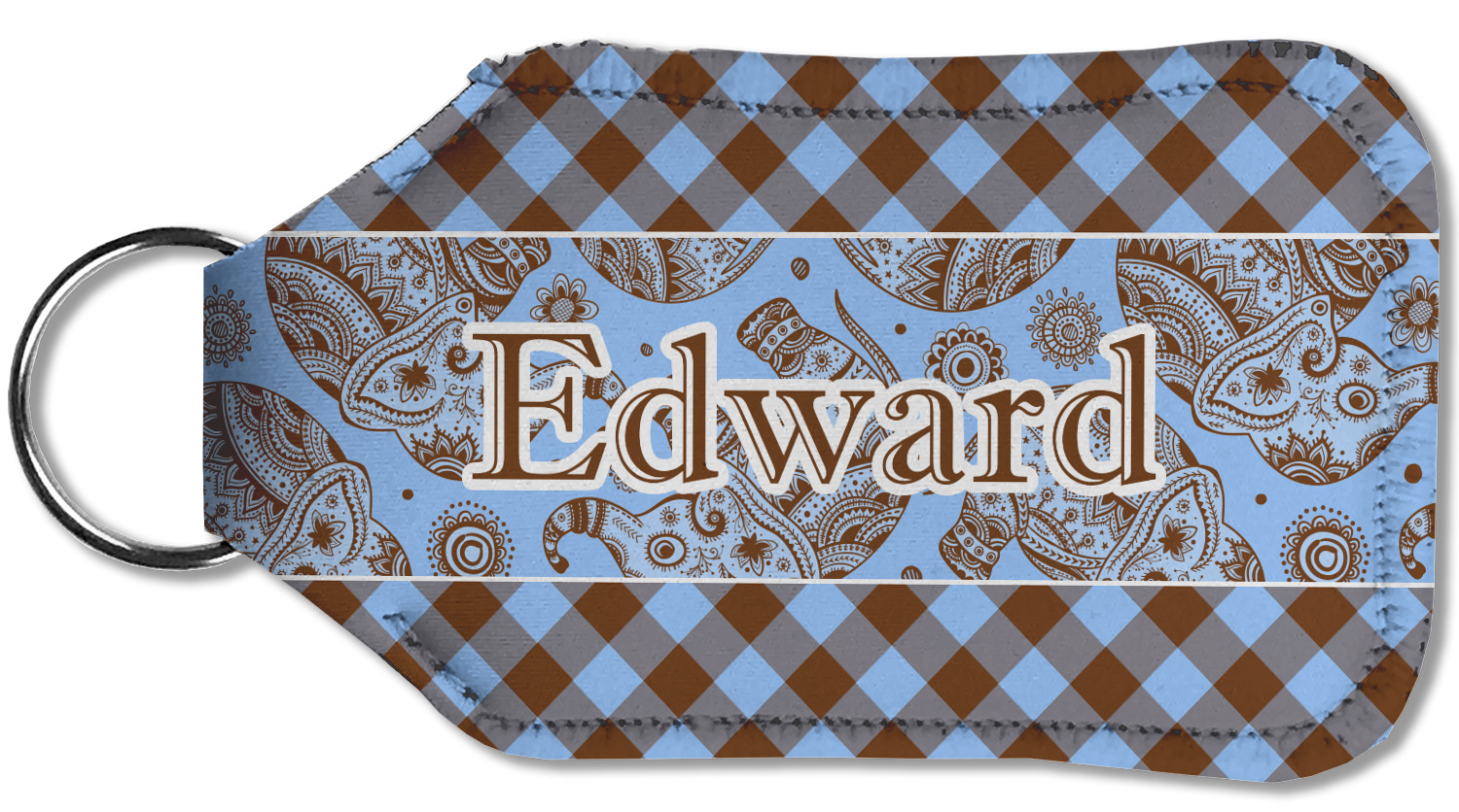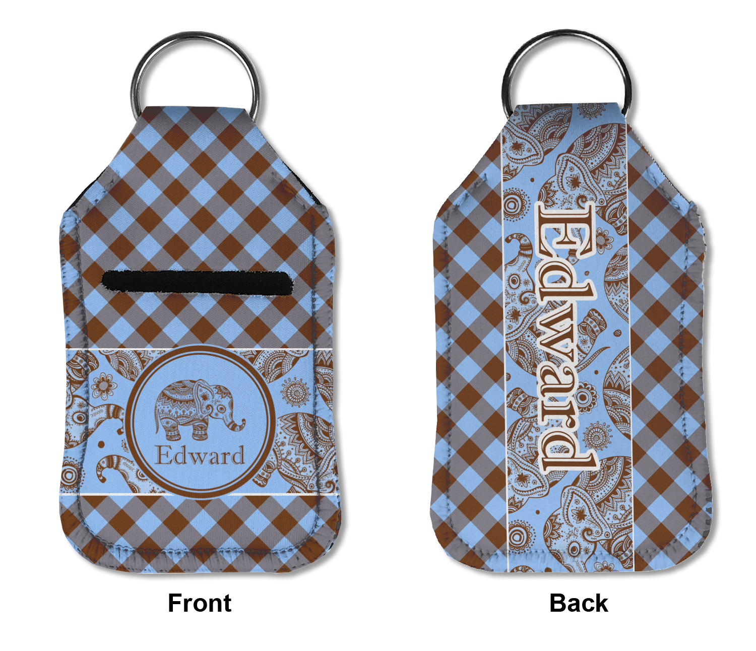 Each hand sanitizer holder comes with its own empty travel-sized, refillable hand sanitizer sure to fit snug in your customized sanitizer case! Our hand sanitizer cases are a durable, yet soft neoprene material sure to last any daily activities or travel agenda. Customize and personalize a hand sanitizer bottle holder with one of our two sizes - small (4.25" x 2.25") or large (5.5" x 2.5"). Each travel sanitizer holder comes with a keyring for attachment on bags, keys, or more!