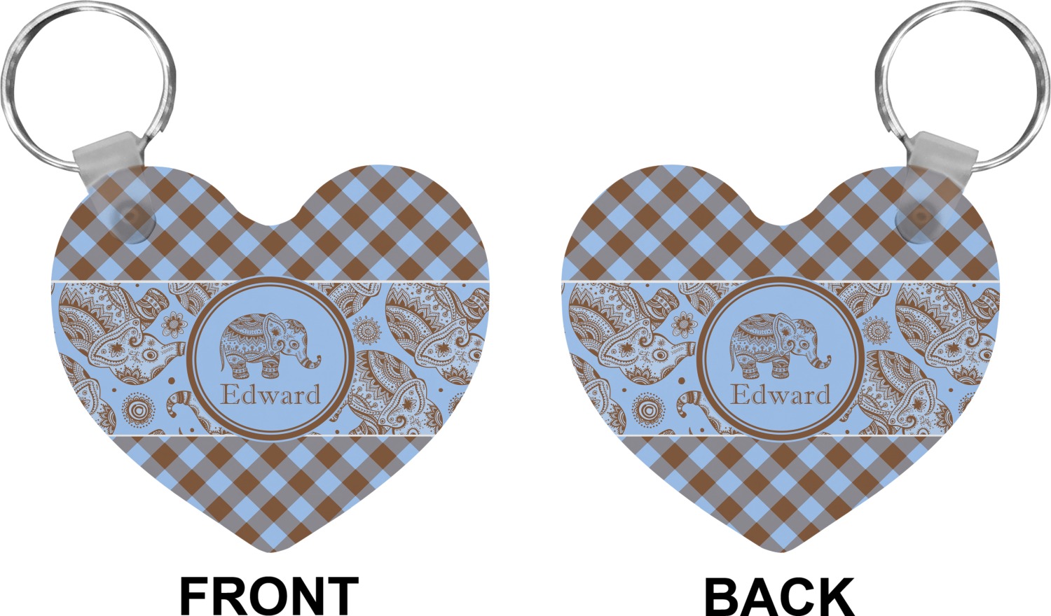 Our personalized keychains attach to the included metal, split key ring with a plastic, removable snap. Since a metal ring is included with your purchase, you have the liberty to keep your keys together on the ring, with or without your unique keychain. We offer this keychain in three different shapes: circle, heart, or diamond. We print your personalized design(s) on both sides of the key chain, and the surface has a glossy, reflective finish that only emphasizes your design. Each keychain is approximately 2.25 by 2.25 inches.