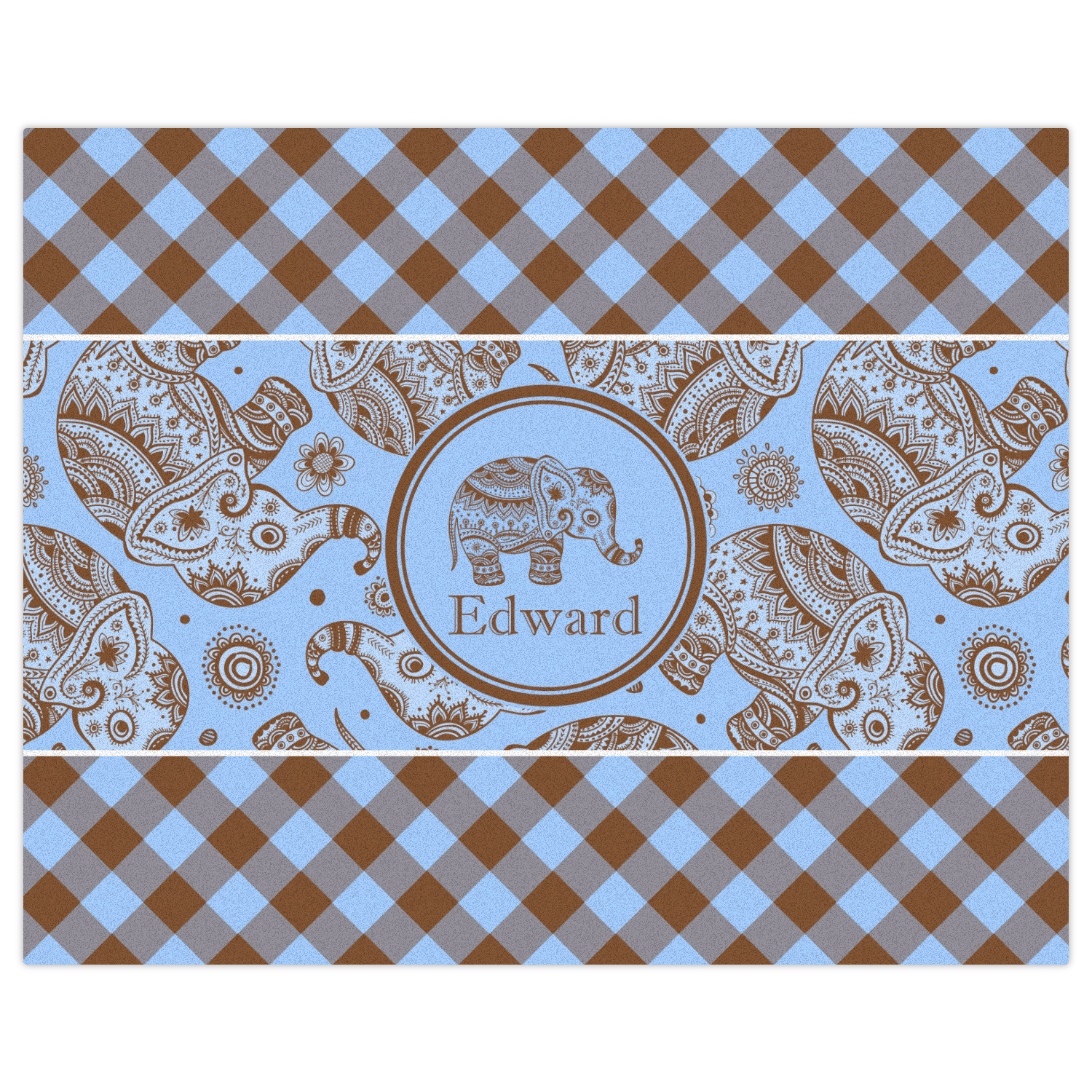 This design with gingham and baby elephants is elegant and versatile. We chose to use baby blue and brown for our colors, however the design is fully recolor-able; so you can change the both the colors to any color combination that you like.