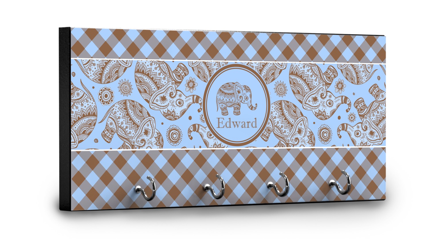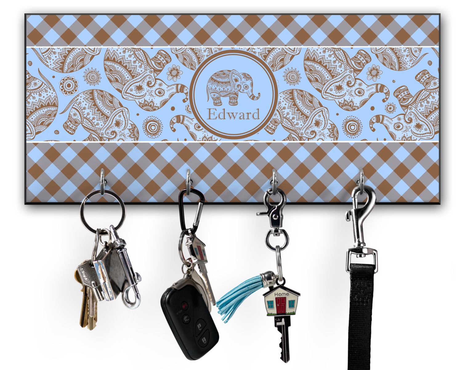 This 11" x 5" key hanger is made of sturdy wood and has four metal hooks lining the bottom. This is the perfect size for a family with several drivers. Not only can you hang keys on it though, but pet leashes and other small items. The board is black on the sides and back and is printed with the design of your choice on the front.