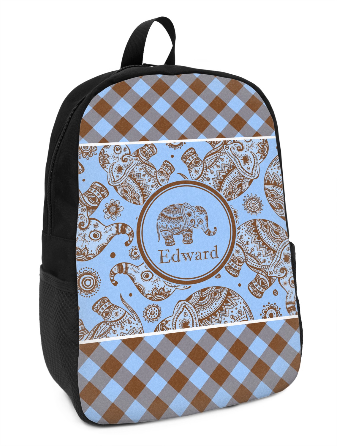 This design with gingham and baby elephants is elegant and versatile. We chose to use baby blue and brown for our colors, however the design is fully recolor-able; so you can change the both the colors to any color combination that you like.