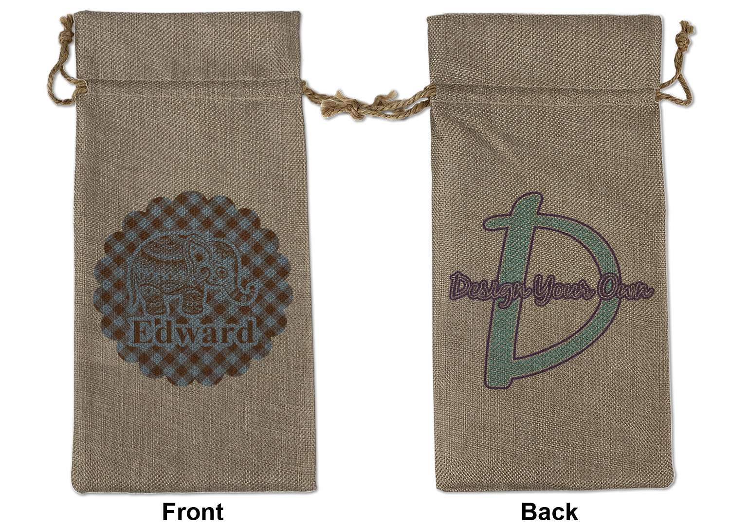 Gifts more meaningful with our personalized gift bags! Our customizable burlap gift bag set adds a special, natural touch to your gifts for any occasion. Create your own design for free with our online design template, or browse one of our many designs to personalize! Make every gift special not only on the inside but the outside as well!