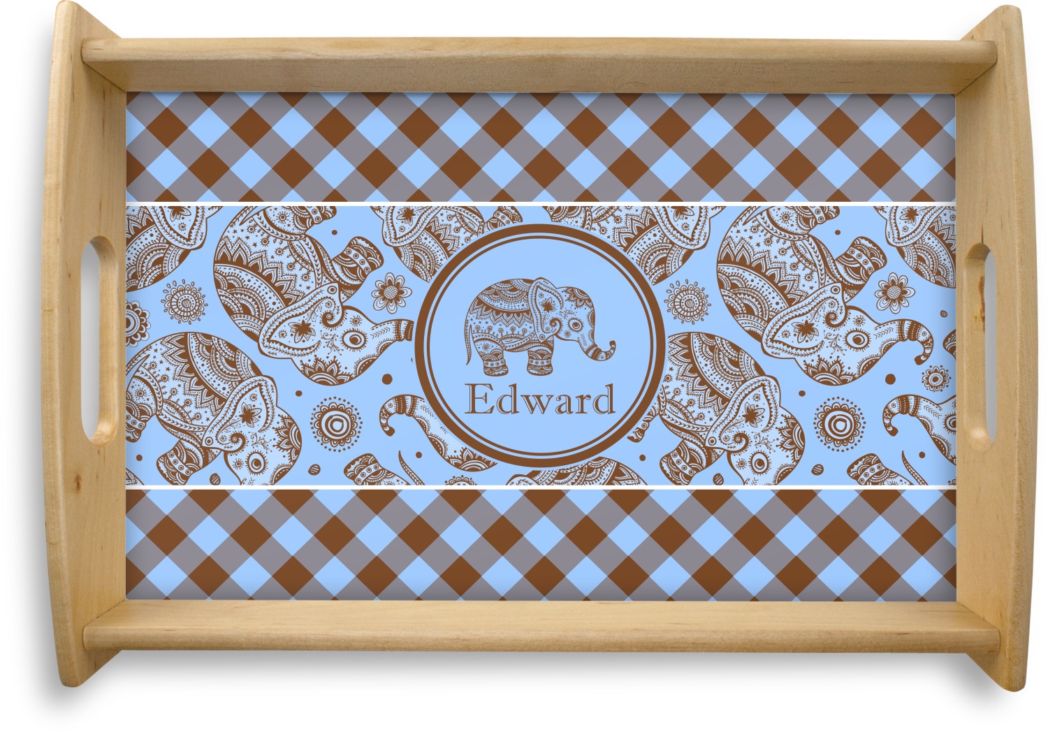 This design with gingham and baby elephants is elegant and versatile. We chose to use baby blue and brown for our colors, however the design is fully recolor-able; so you can change the both the colors to any color combination that you like.