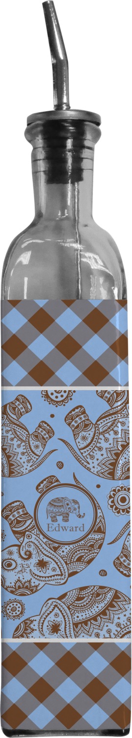 Made from recycled glass in Spain, these oil bottles have a classic, delicate look, and are accompanied by a metal spout for controlled pouring. Each bottle holds approximately 13 ounces and measures at 12 by 2 inches. We customize your glass oil bottle by applying your personalized design on the front and sides, using an adhesive. Our customizable stickers are made from high quality, gloss vinyl and are printed with waterproof, eco-solvent inks. These pieces are machine cut for accuracy and symmetry. The result is a robust, waterproof, adhesive decal that will not fade or deteriorate with time.