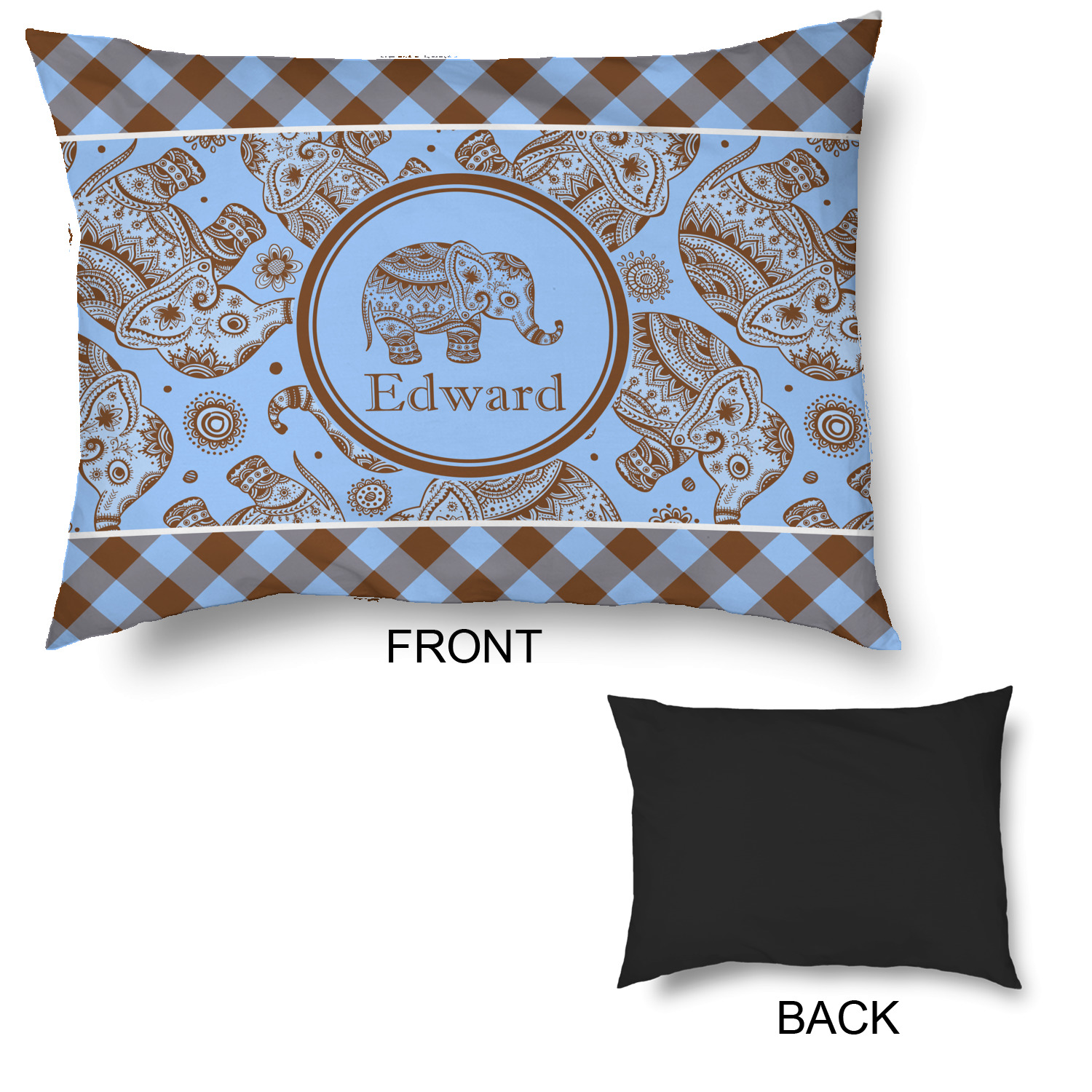 We chose the angled gingham for the top and bottom, but you have the choice of straight gingham or any other pattern in our system that you like. Our baby elephant pattern are available in 3 different styles - we chose style 2. We opted not to have a ribbon and chose a simple round label with a graphic of the elephant and the personalization below the elephant graphic.