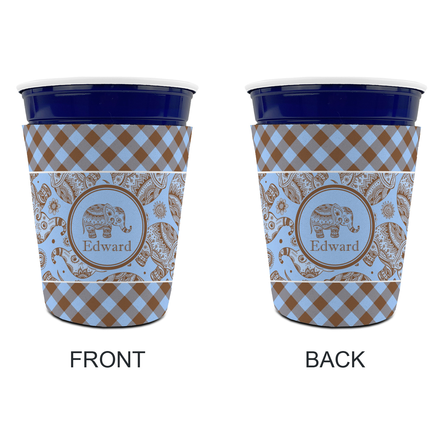 Made from neoprene with a polyester outer fabric and sewn seams, these premium quality party cup sleeves are very durable and will hold up to heavy use. They are available in 2 styles - with a bottom or just a sleeve to go around the outside of the tapered cup. The sleeve covers are about 4" tall and cover about 90% of the classic 16 oz. Solo cup.