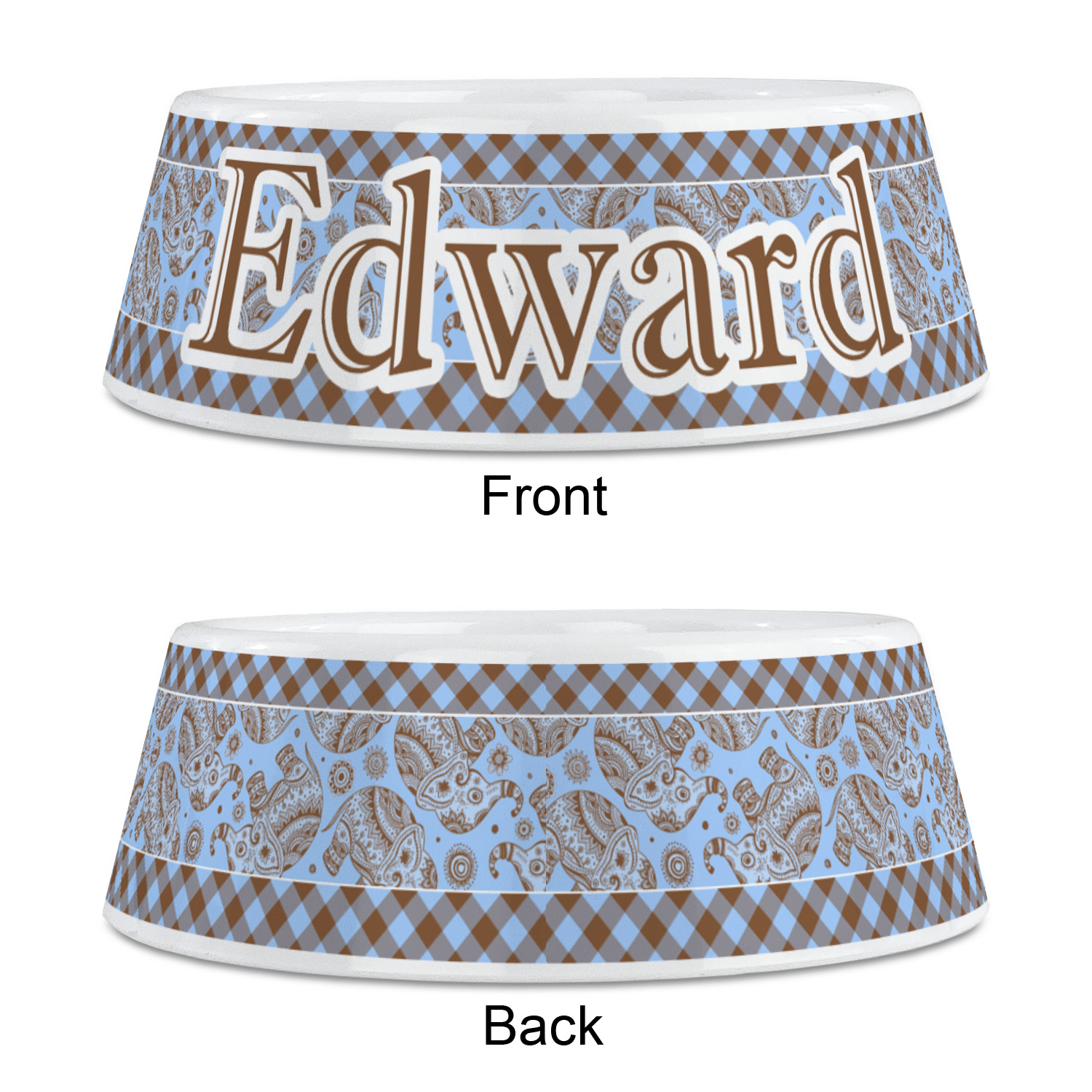 We chose the angled gingham for the top and bottom, but you have the choice of straight gingham or any other pattern in our system that you like. Our baby elephant pattern are available in 3 different styles - we chose style 2. We opted not to have a ribbon and chose a simple round label with a graphic of the elephant and the personalization below the elephant graphic.