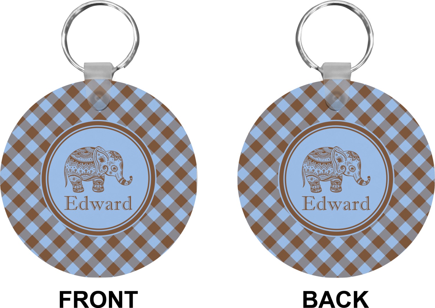 Our personalized keychains attach to the included metal, split key ring with a plastic, removable snap. Since a metal ring is included with your purchase, you have the liberty to keep your keys together on the ring, with or without your unique keychain. We offer this keychain in three different shapes: circle, heart, or diamond. We print your personalized design(s) on both sides of the key chain, and the surface has a glossy, reflective finish that only emphasizes your design. Each keychain is approximately 2.25 by 2.25 inches.