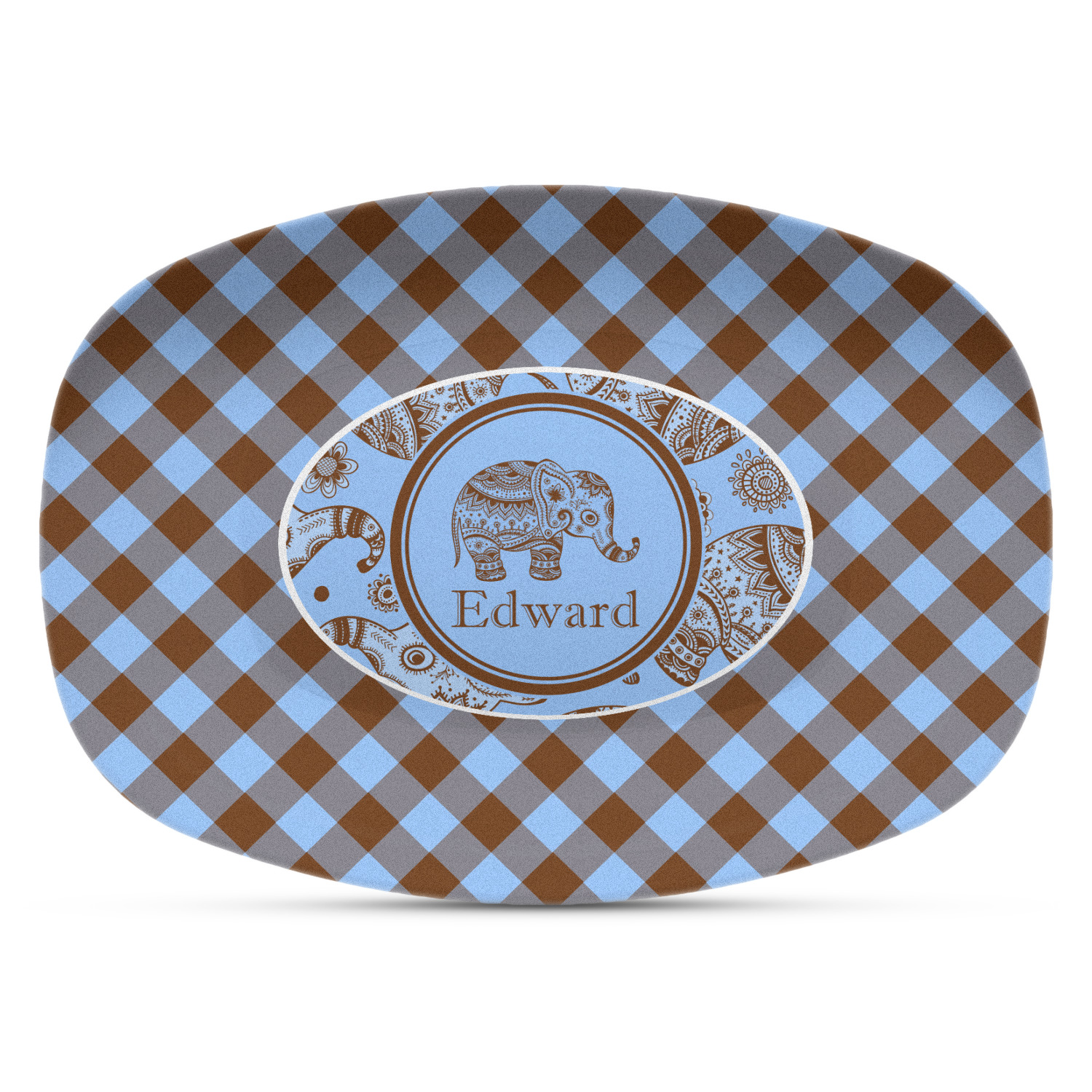 These serving platters are made from a composite, thermo-set, polymer plastic that gives it the versatility, durability, and weight of a melamine platter, without any of the downsides of melamine. These personalized platters, can withstand temperatures up to 250 degrees Fahrenheit, for up to 60 minutes. No harmful chemicals, such as BPA, formaldehyde, and DEHPs were used in the manufacturing of this product. This large serving platter measures at 14" x 10.25", and is spacious enough to hold any of your appetizers or bite-sized desserts. The platter exhibits your personalization across the entirety of its front.